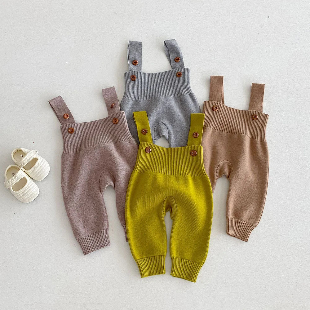 Girls Solid Knit Overalls