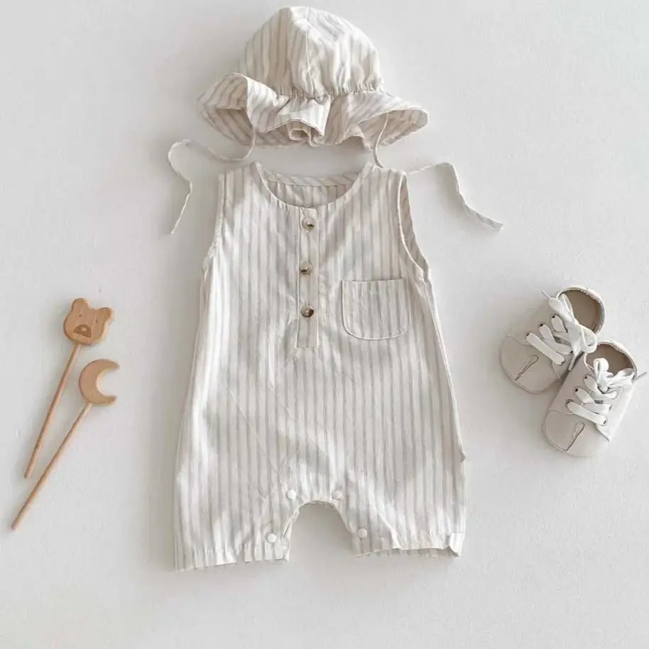Girls Striped Sleeveless Romper & Cap Set