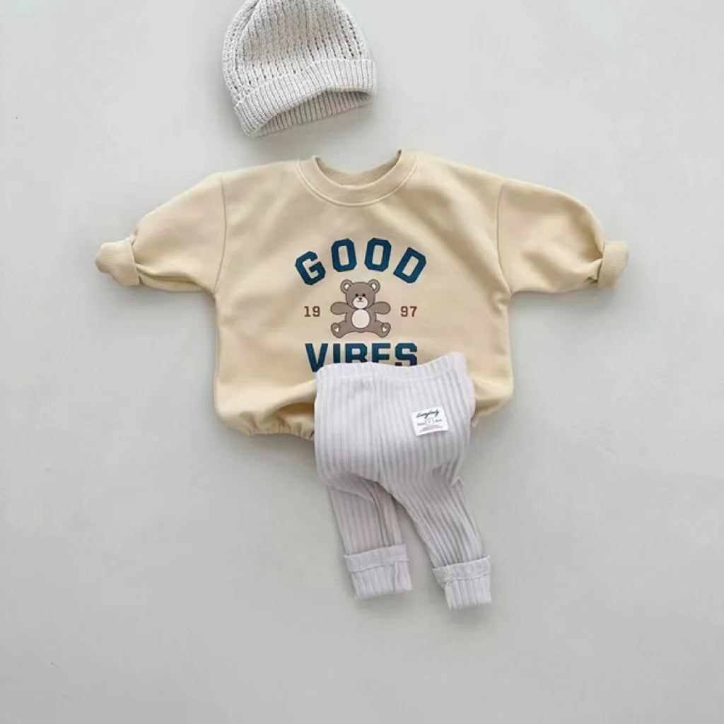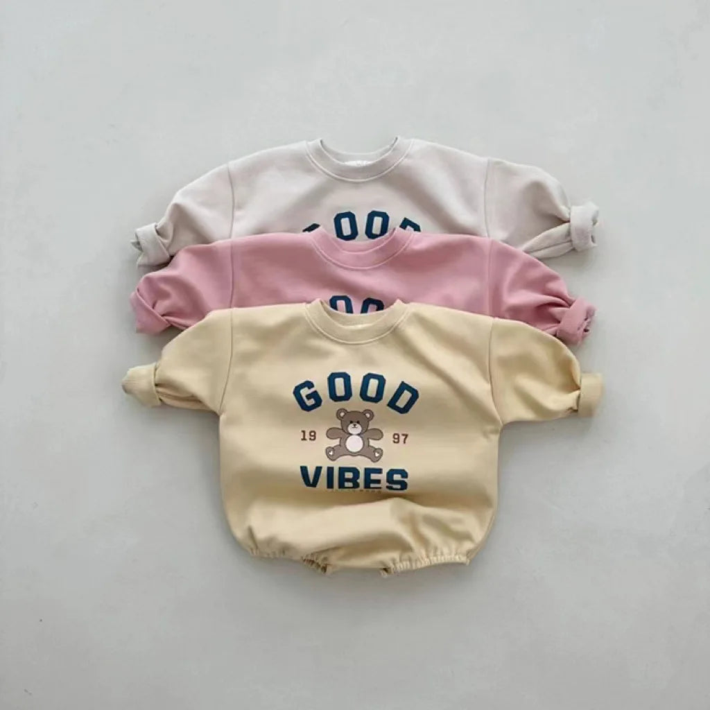 Wrap your little one in "GOOD VIBES" with this adorable Bear Long-Sleeved Onesie. Made from soft and cozy cotton, this unisex onesie is perfect for babies aged 6–24 months. The O-neck collar and long sleeves keep your baby comfortable during spring and autumn. The cute cartoon bear pattern adds a touch of playfulness to their outfit. With a perfect fit and quality materials, this onesie ensures maximum comfort for your little bundle of joy. Spread positive vibes while dressing them up in this charming onesie. 🐻💕