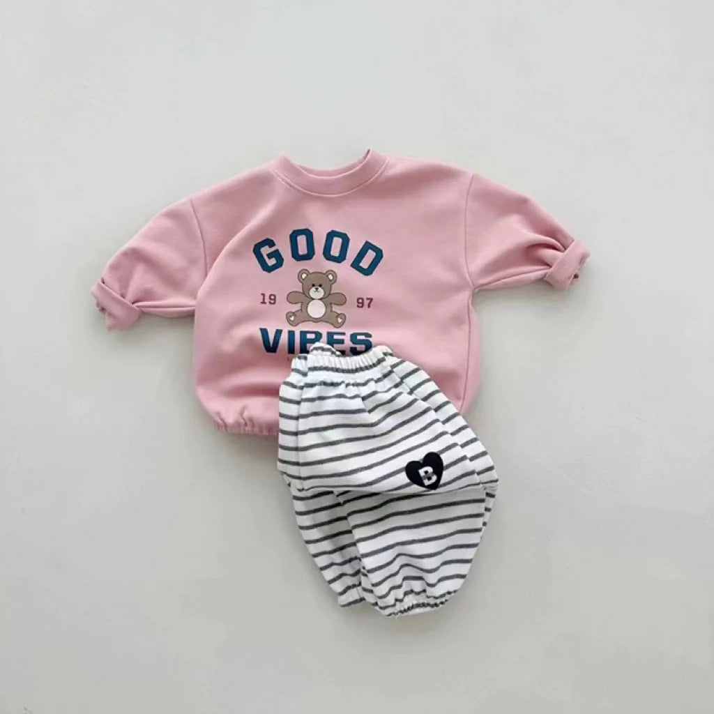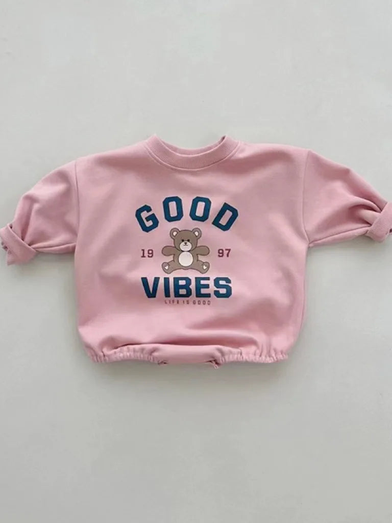 'GOOD VIBES' Bear Long-Sleeved Onesie