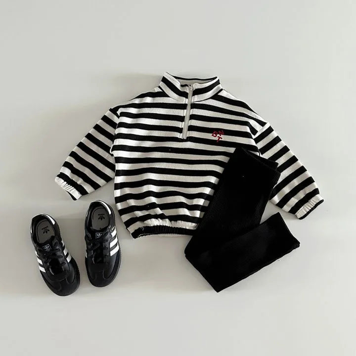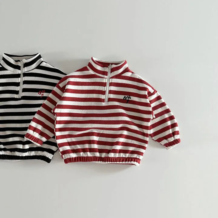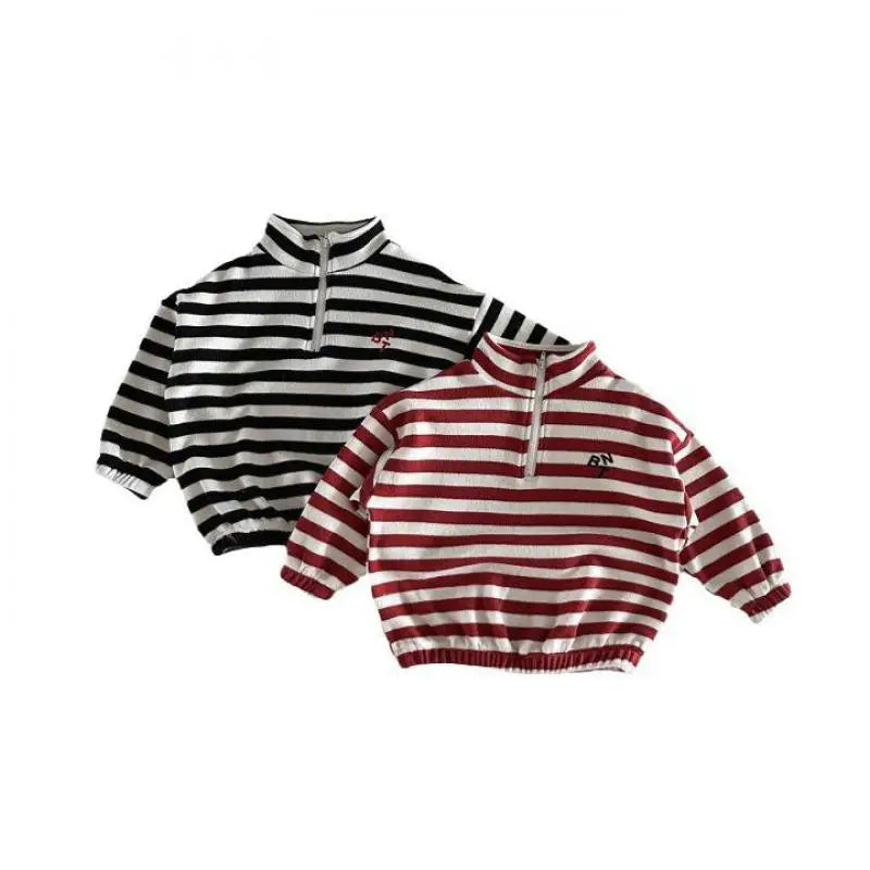 Introducing our Half-Zip Striped Sweatshirt, the perfect blend of style and comfort for your little ones. Crafted from soft and breathable cotton, this casual sweatshirt is designed to keep them cozy throughout spring and autumn. With its trendy letter pattern and unisex design, it's a versatile addition to any little fashionista's wardrobe. The half-zip feature adds a touch of convenience, making dressing up a breeze. Available for ages 1-6 years, this sweatshirt fits true to size. Upgrade your child's style game with this must-have piece! 🌟👶👕 #FashionForLittleOnes #TrendyKids #SweatshirtSeason