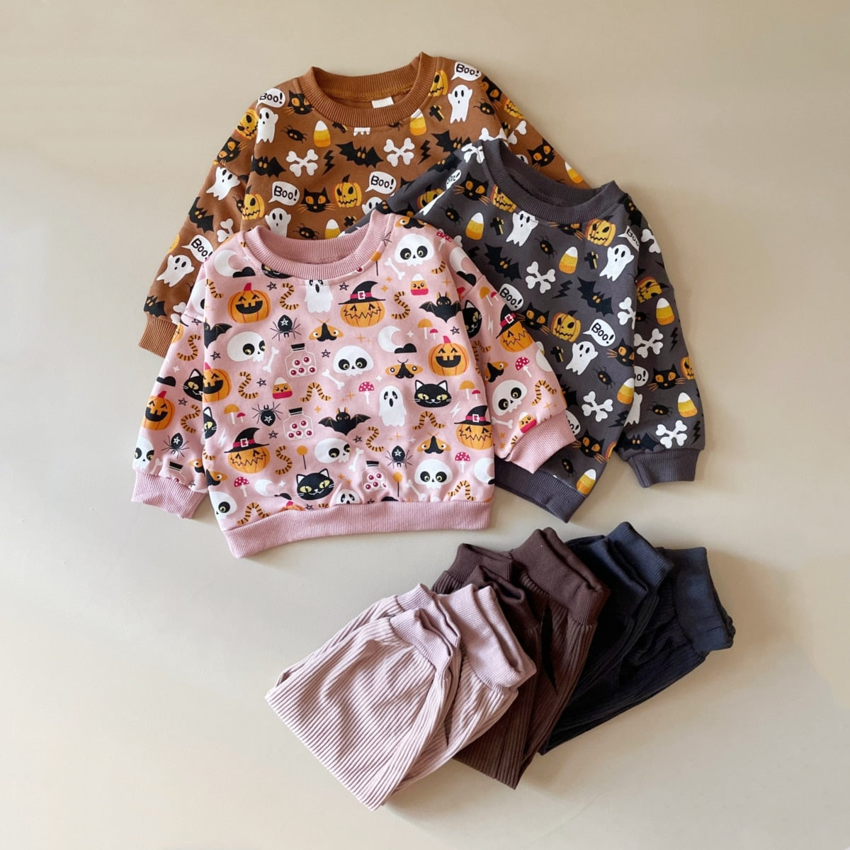 This chic Halloween Corduroy Clothing Set features a fashionable, regular-length long sleeve, stylishly printed with a cotton-polyester blend, perfect for both spring and autumn. Baby unisex with an O-neck collar and pullover closure, this set is crafted of soft corduroy and tailored to fit true to size.