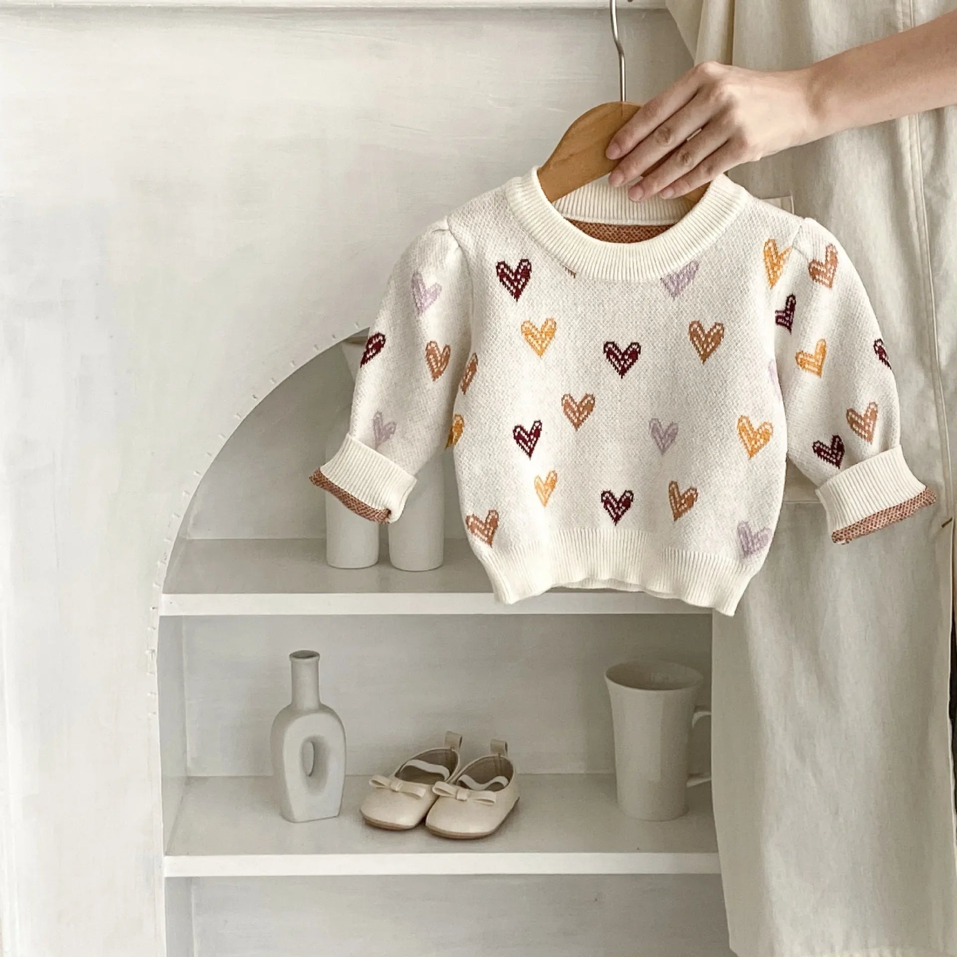 Add a touch of love to your baby girl's autumn wardrobe with this adorable Heart Knitted Sweater 🤎🧡! Perfect for little ones aged 3 to 36 months, this sweater features a cute heart print that brings charm to any casual outfit. Made from a blend of acrylic and cotton, it offers softness and warmth for those cooler autumn days 🍂. With an easy pullover O-neck design and long sleeves, it’s a cozy go-to for playdates or family outings. Fits true to size, ensuring your baby stays snug and stylish all season long!