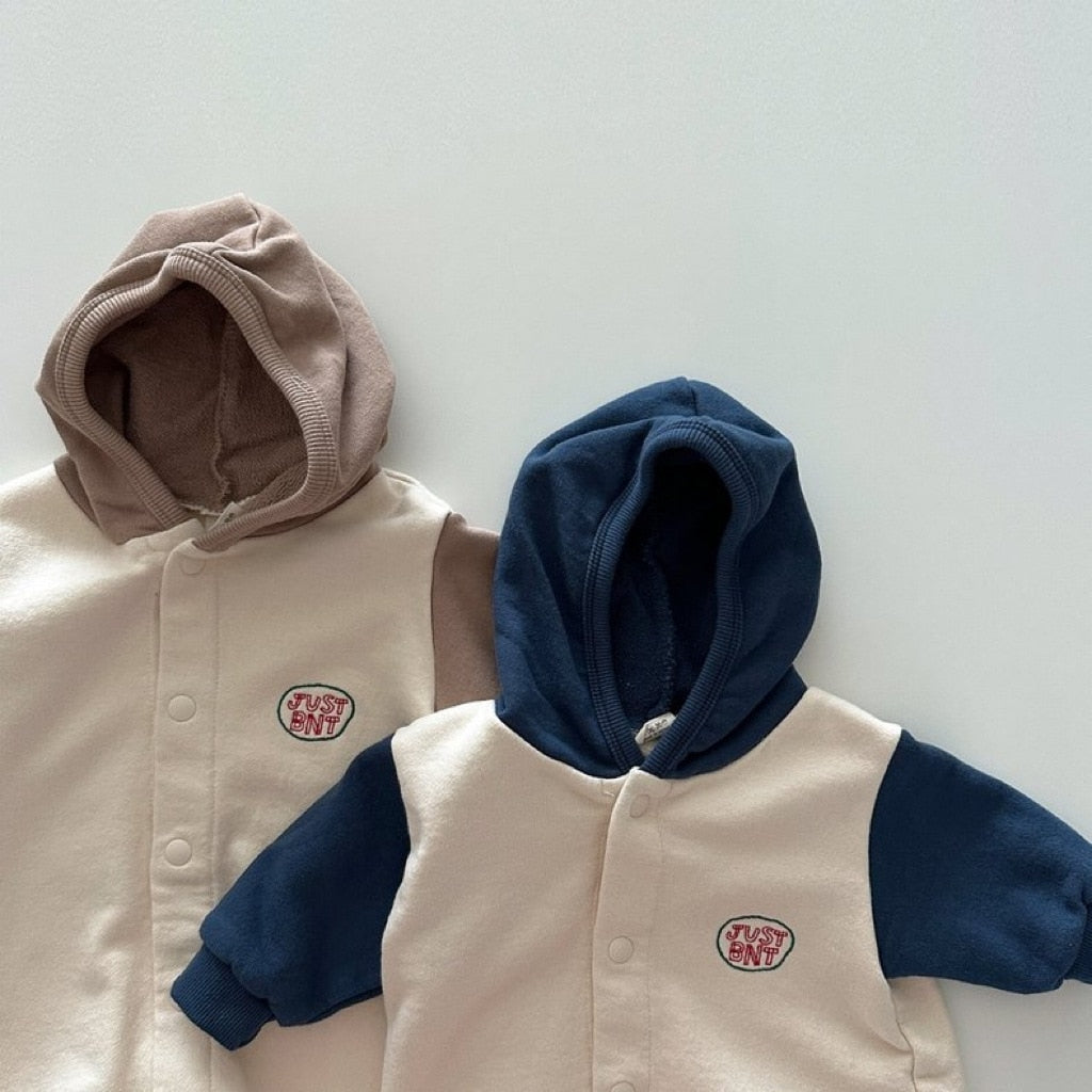 Hooded Snap-Button Long-Sleeved Romper