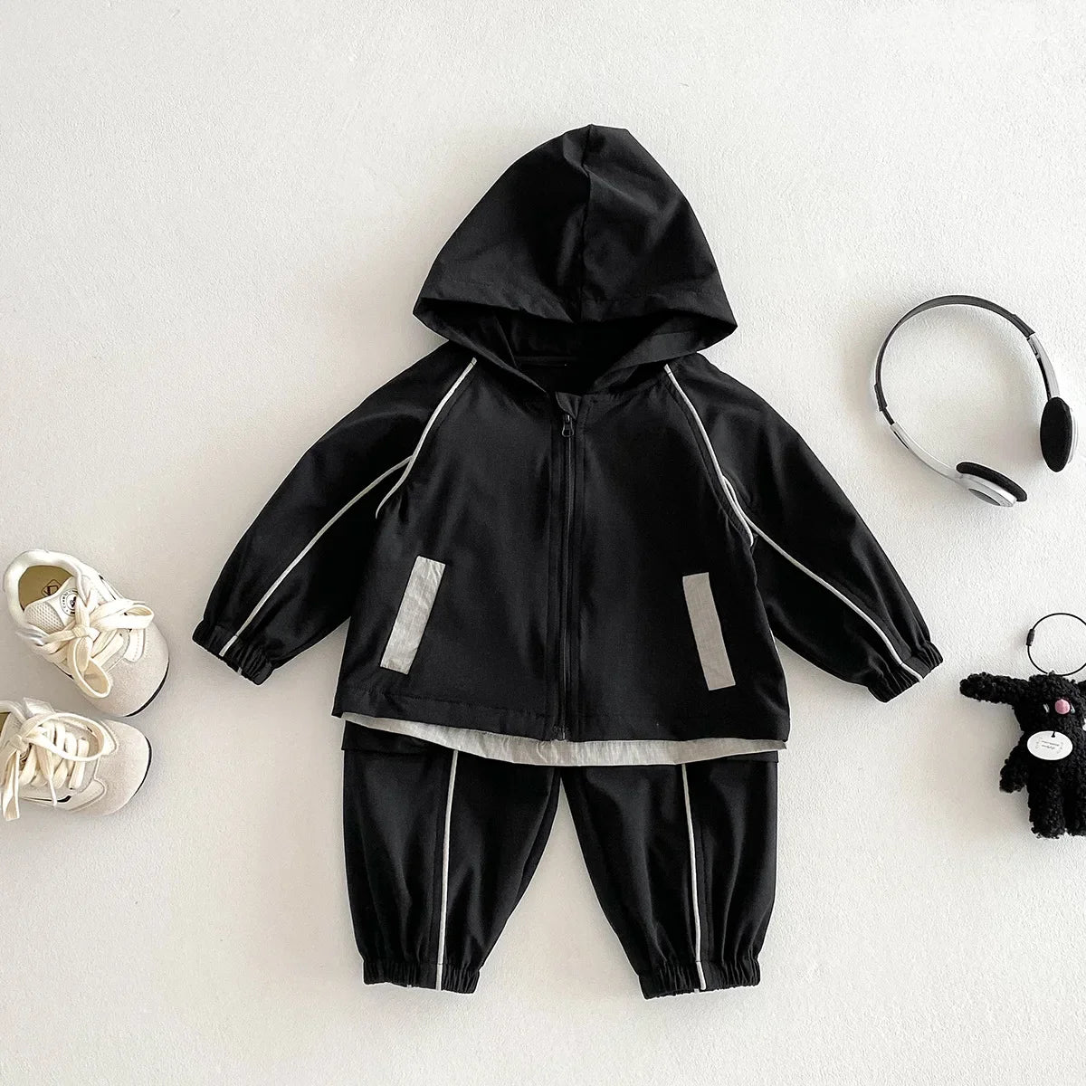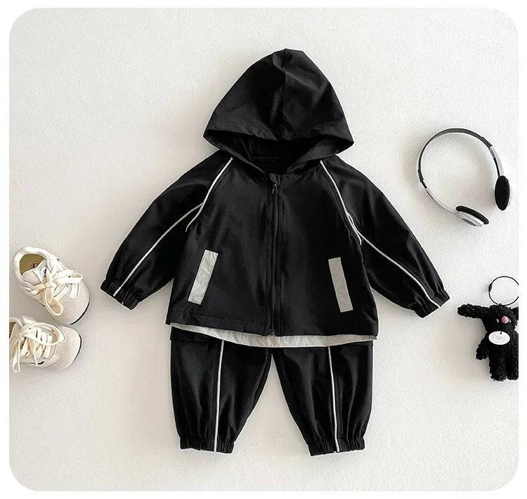 Get ready for active adventures with our Hooded Sporty Track Suit! 🏃♂️ This dynamic duo brings athletic style to little wardrobes aged 9-36 months. Crafted from durable polyester with cool patchwork details, this unisex set features a cozy hooded top and matching pants perfect for autumn play. The single-breasted closure and O-neck design make dressing easy, while long sleeves keep your tiny athlete warm during all their explorations. Whether they're crawling, toddling, or zooming around the playground, this true-to-size set keeps your little champion comfy and sporty-chic! ⭐