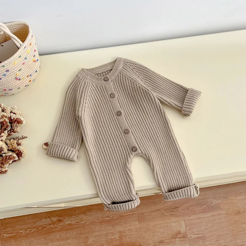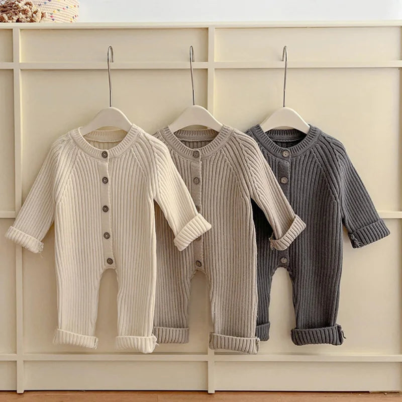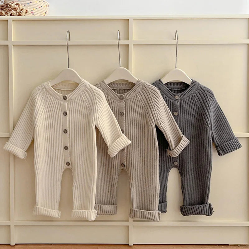 Introducing our cozy Infant Knit Romper, perfect for little ones aged 3 to 24 months. Crafted with love from soft and breathable cotton, this winter essential will keep your baby warm and comfortable. The unisex design features a classic O-Neck collar and a convenient single-breasted closure. With its solid pattern and long sleeves, this romper is both stylish and functional. Available in 3 adorable colors, it's the ideal choice for your little bundle of joy. Get ready to embrace winter with this adorable knit romper! 🧶❄️👶