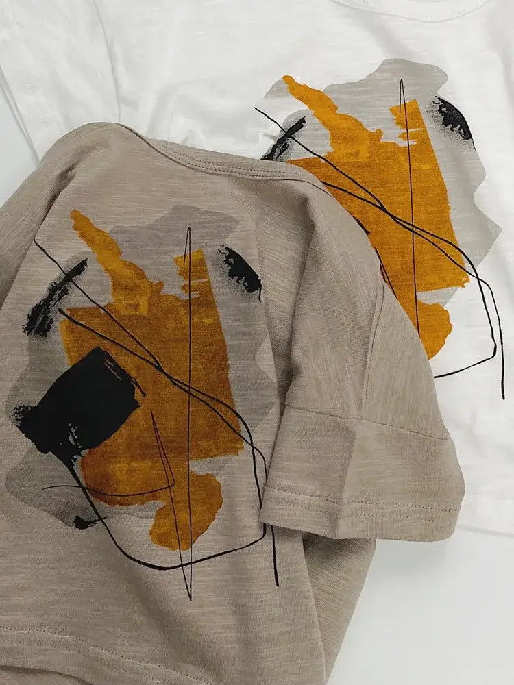 Introducing our Kids' Abstract Short Sleeve T-Shirt, a casual and comfortable choice for your little ones. Made from soft cotton, this regular-length top features a vibrant abstract print that adds a playful touch to their wardrobe. Suitable for children aged 1-6 years, this unisex tee is perfect for summer with its short sleeves and O-neck collar. With a true-to-size fit, this tee is both stylish and practical. Let your kids express their unique style with our Kids' Abstract Short Sleeve T-Shirt! ššāØ