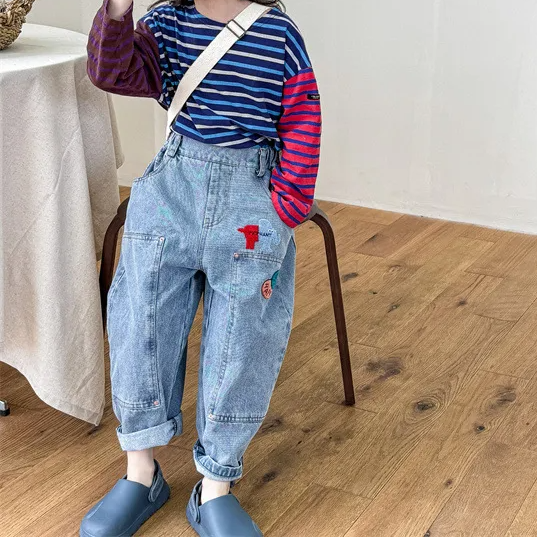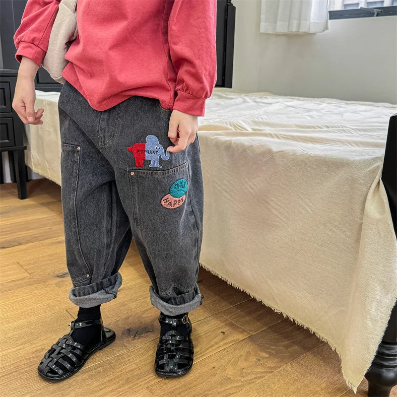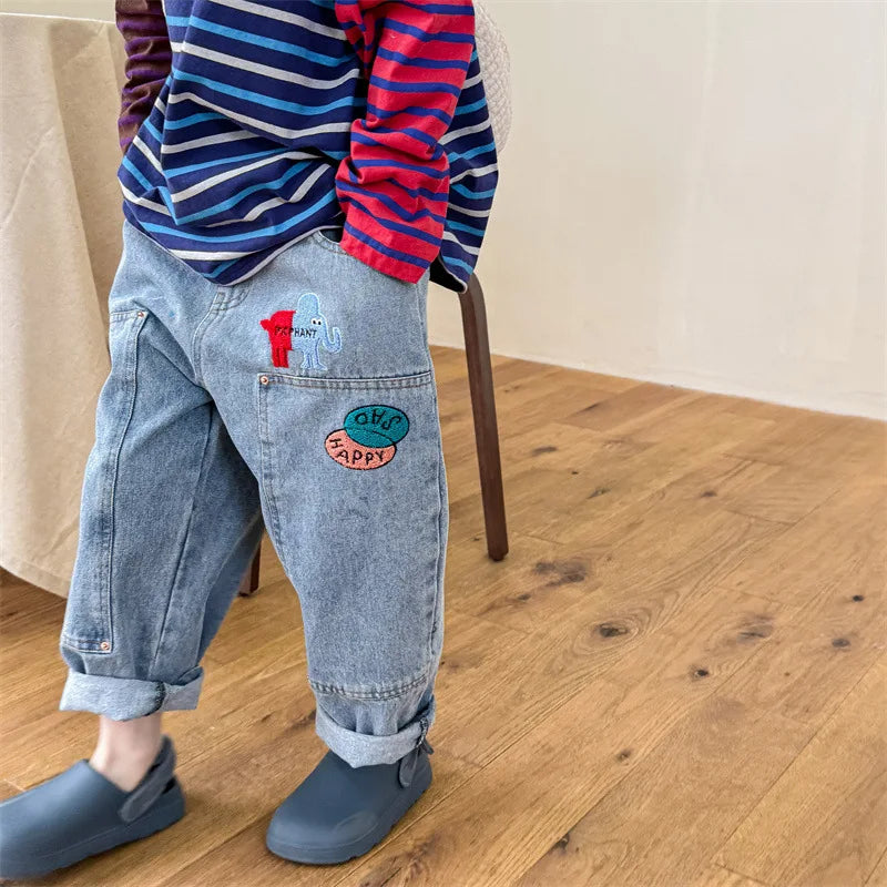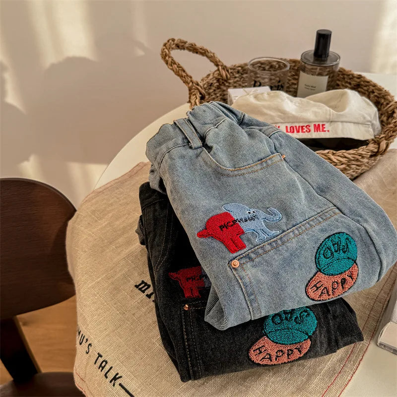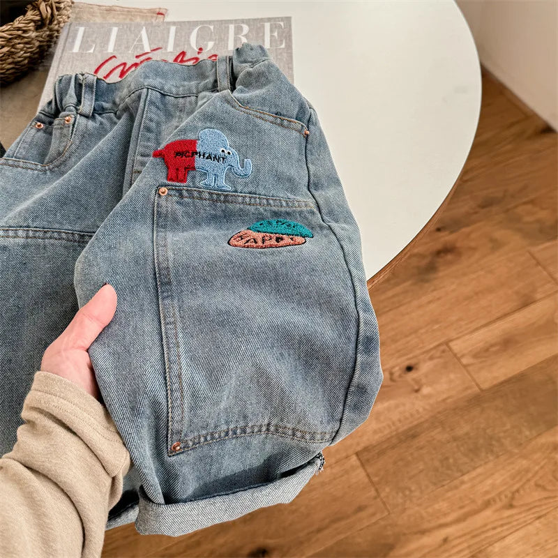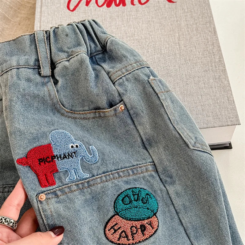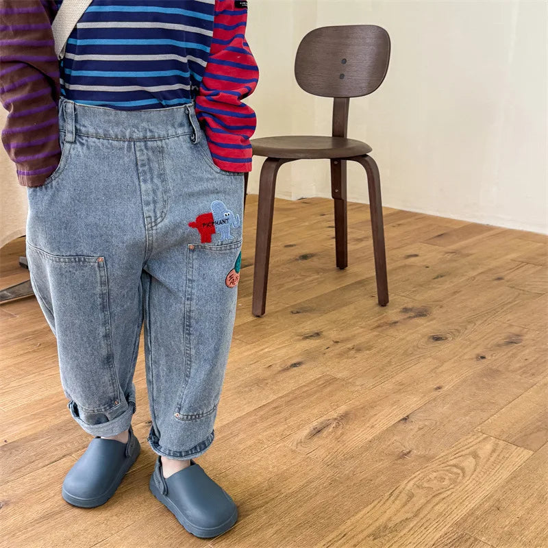 👖 Cartoon Fun Meets Denim Cool! 👖 These Kids Cartoon Patched Denim Pants are the ultimate playtime essential for your little adventurer! With a comfy loose fit, elastic waist, and adorable cartoon patches, these pants are made for fun. Your little one will love exploring, crawling, and climbing in these durable denim pants, perfect for spring and fall adventures. Plus, the handy pockets are perfect for storing treasures and the elastic waist makes getting dressed a breeze! Get ready for endless smiles and compliments on these stylish and practical pants, designed for ages 1-6. #kidsclothes #toddlerfashion #denimpants #cartoonpants #playtimefashion