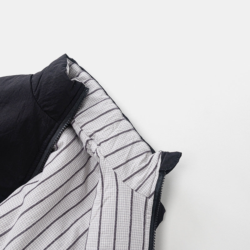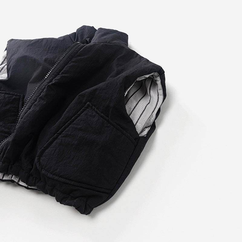 The genius vest every parent needs! This reversible quilted design gives your child TWO looks in one cozy piece. Solid black on one side, trendy stripes on the other—it's like getting two vests for the price of one! ❄️