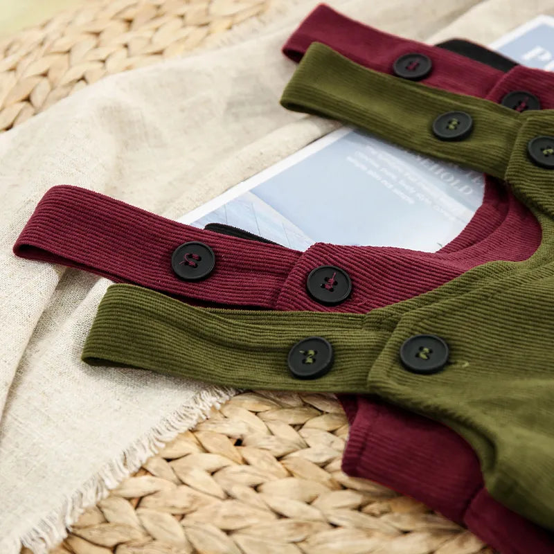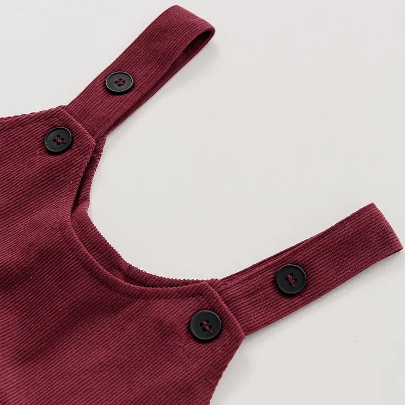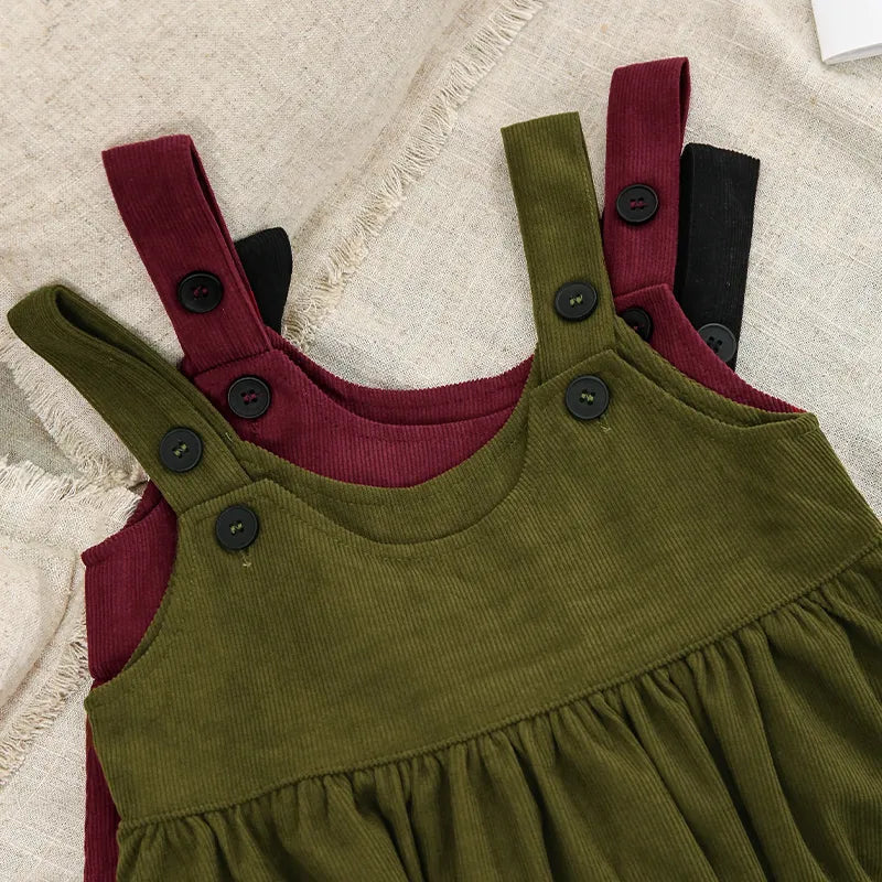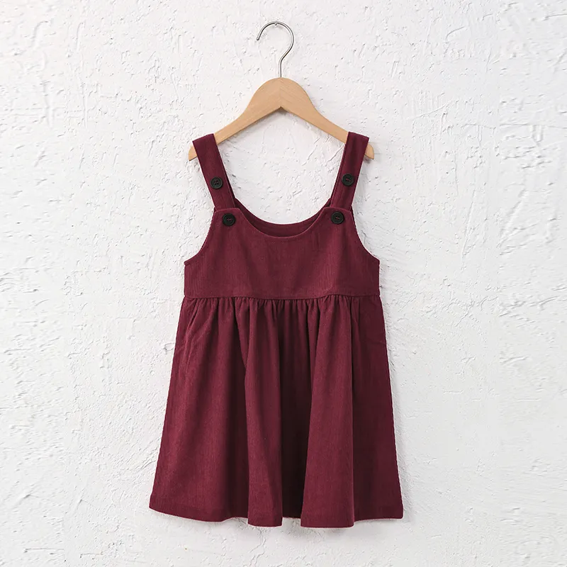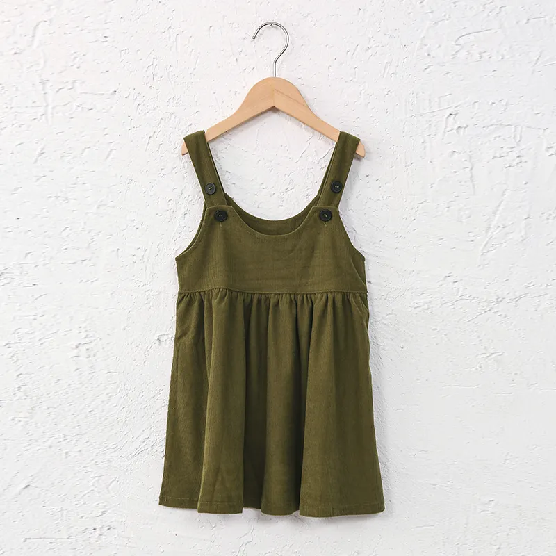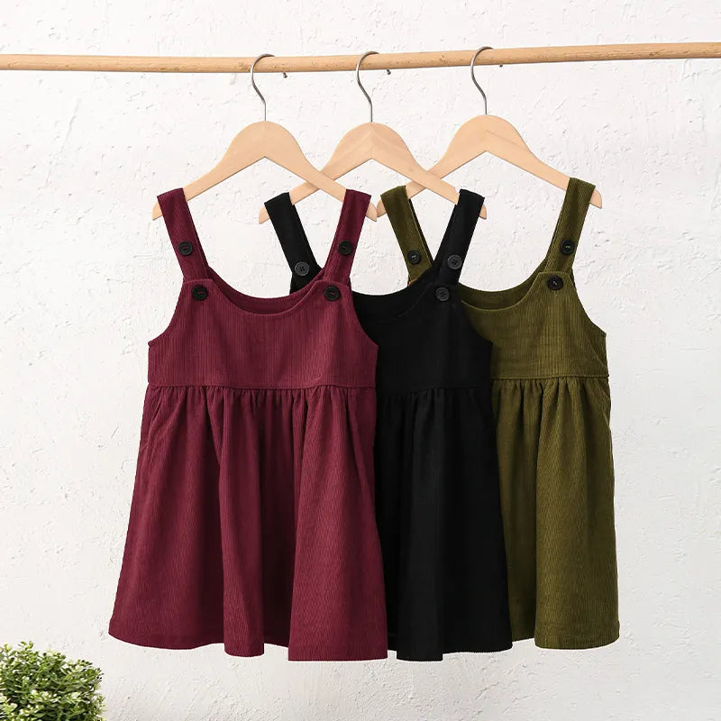 This stylish Knee-Length Corduroy Solid Dress is sure to make your little princess stand out! Featuring an A-Line silhouette, adjustable straps, and a timeless button decoration, this dress is perfect for any occasion. Crafted from the highest quality material to ensure comfort and a perfect fit, she will be the belle of the ball! šš»š