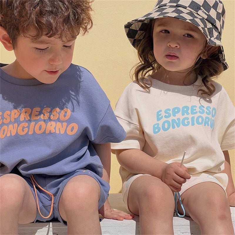 Looking for trendy and comfortable summer clothes for your little ones? This adorable set features a fashionable letter print t-shirt and shorts. This two-piece set is made of soft and breathable cotton, perfect for both boys and girls to wear casually. Give your kids the best with this stylish clothing set.