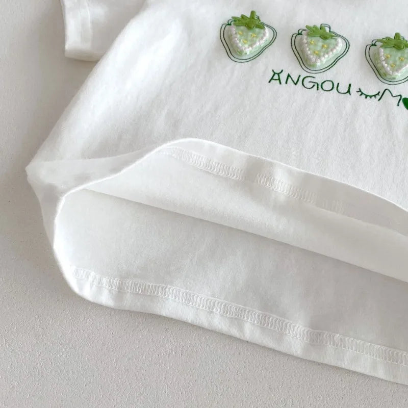 🍓Sweeten up your little one's summer wardrobe with this delightful Lightweight Cool Strawberry Tee! 🍓 Made from breathable cotton, this adorable tee is perfect for keeping your little berry cool and comfy all season long. The playful strawberry graphic adds a touch of sweetness to any outfit, while the relaxed fit allows for plenty of room to play and explore. Pair it with shorts, jeans, or a skirt for a berry cute look! 🧺 #babyfashion #summerstyle #strawberrytee