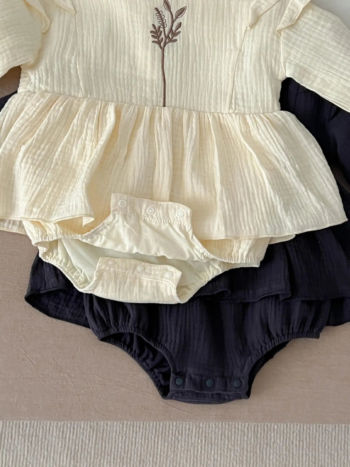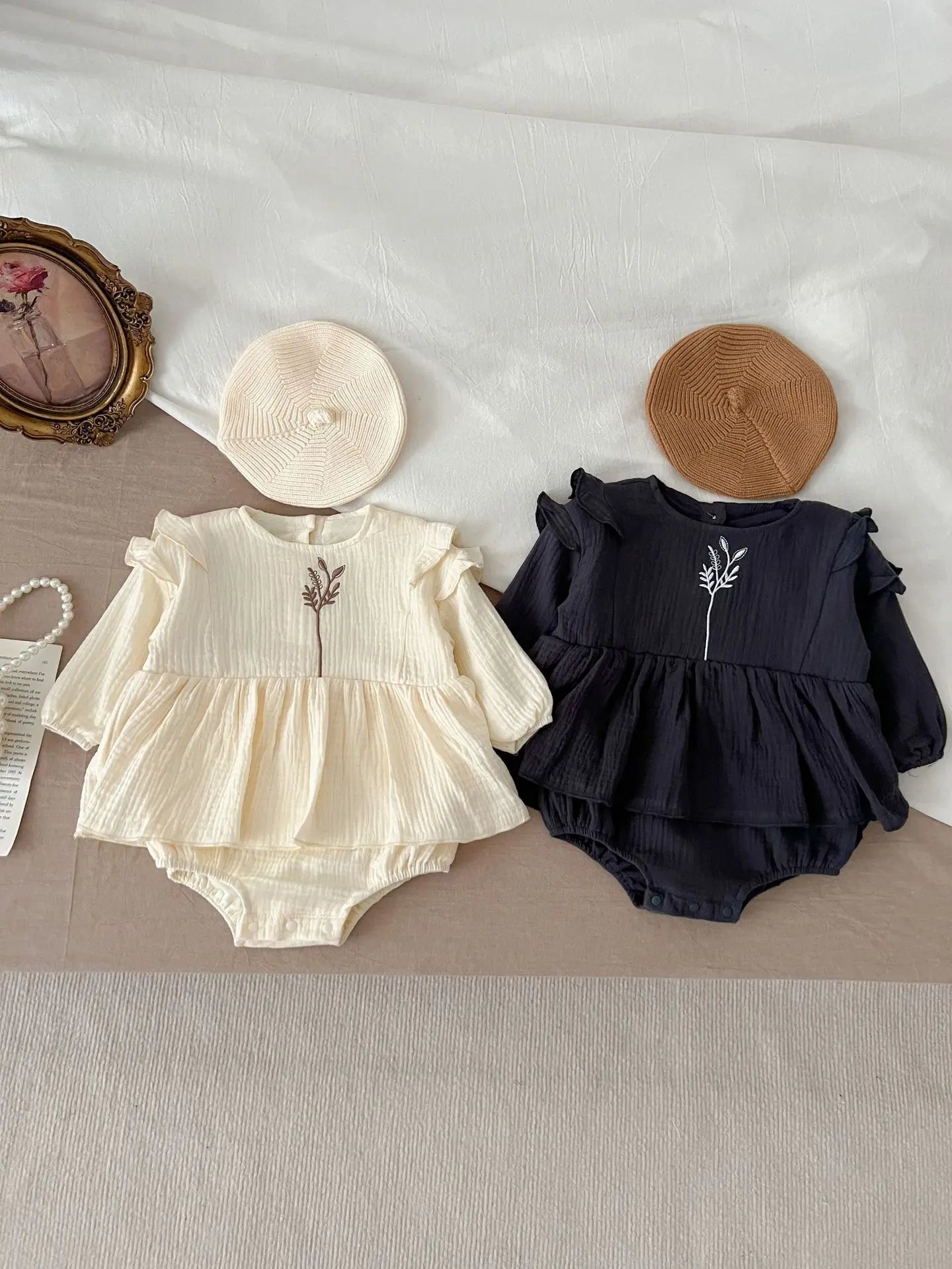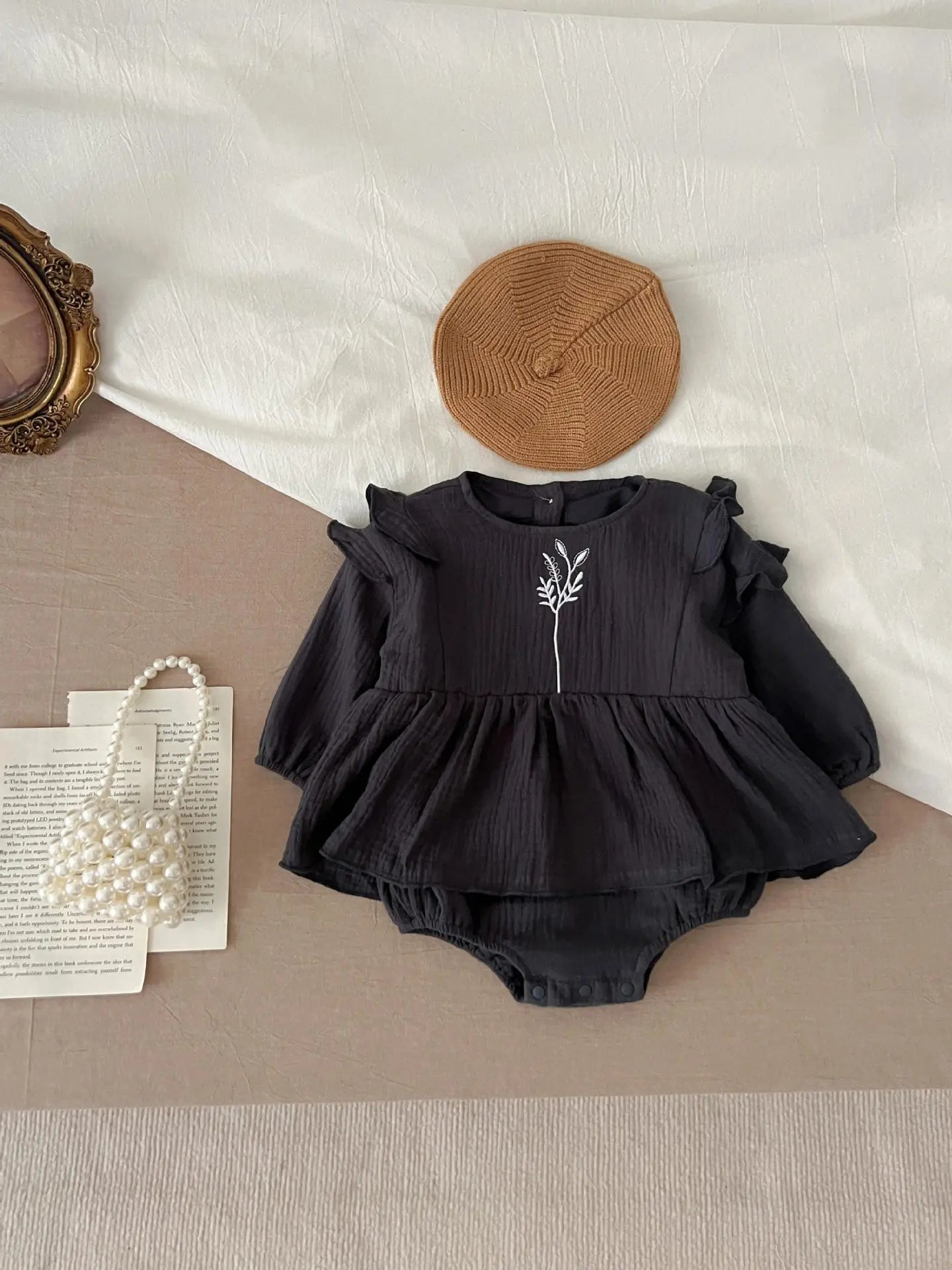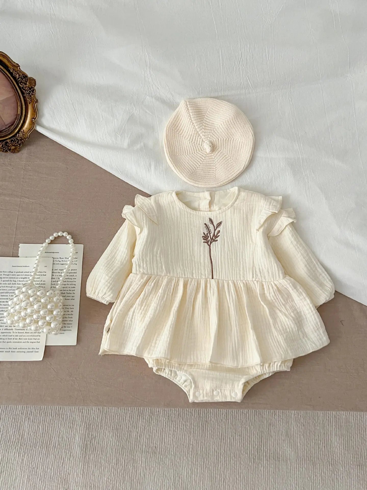 Introducing our Little Plant Embroidered Onesie Dress, designed for your little girl's comfort and style. Made from soft cotton, this dress is perfect for the spring and autumn seasons. With its solid pattern and long sleeves, it keeps your baby snug and cozy. The O-neck collar adds a touch of elegance, while the easy fit ensures maximum comfort. Available in sizes suitable for 6 to 36 months, this onesie dress is a must-have addition to your baby's wardrobe. Get ready for endless cuteness with our Little Plant Embroidered Onesie Dress! 🌸🌼👧