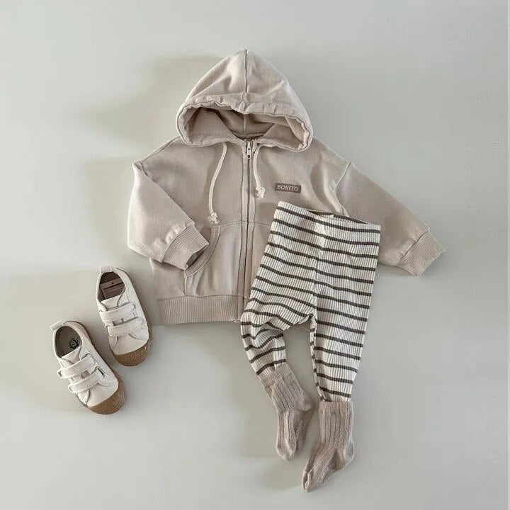 This stylish hoodie is perfect for keeping your little one warm and looking great. Made from soft, comfortable cotton, it features a zip-up front and long sleeves for a snug fit. The letter pattern adds a fun touch that your baby is sure to love. With this hoodie, your kiddo will stay comfortable and look super cute! 🐣 🤗