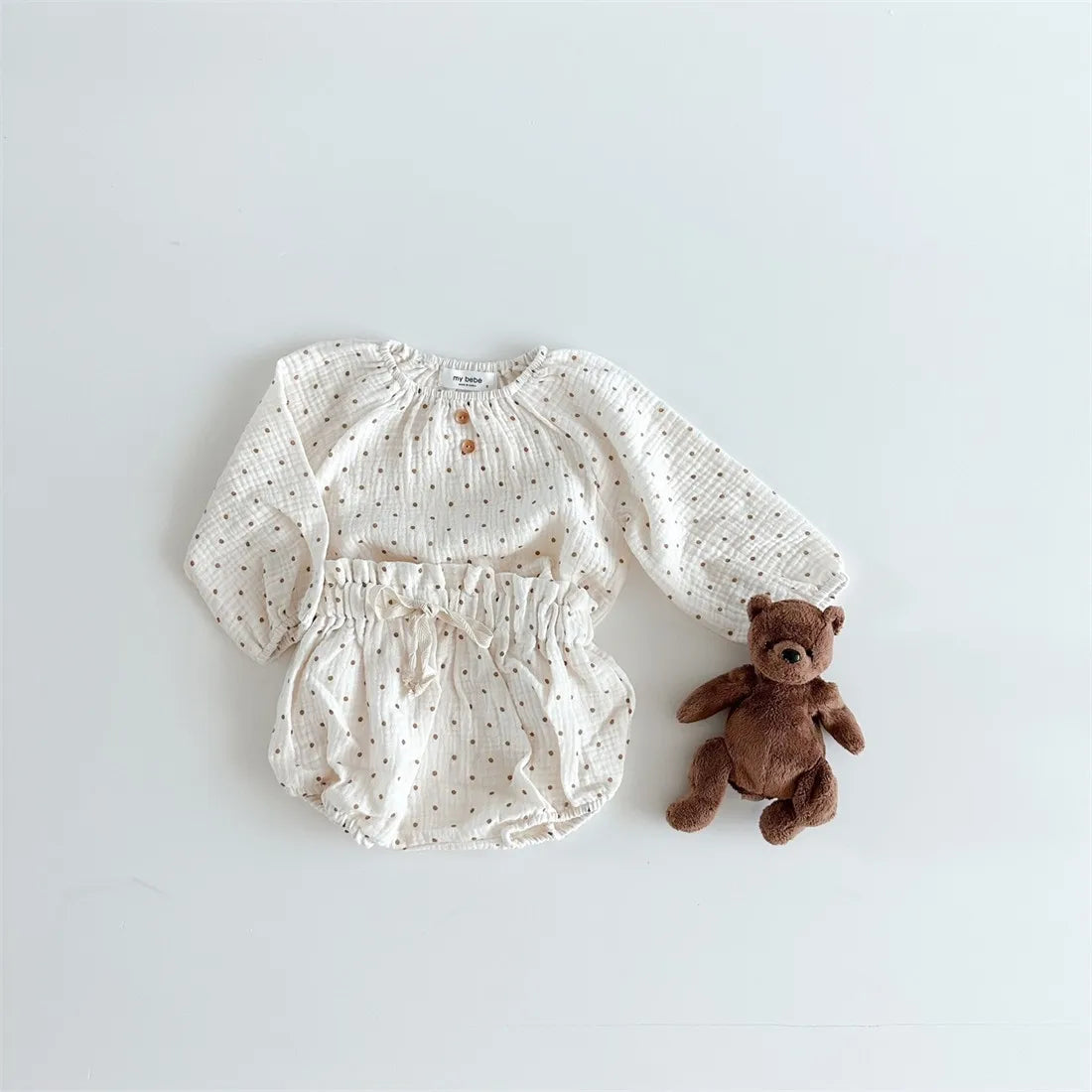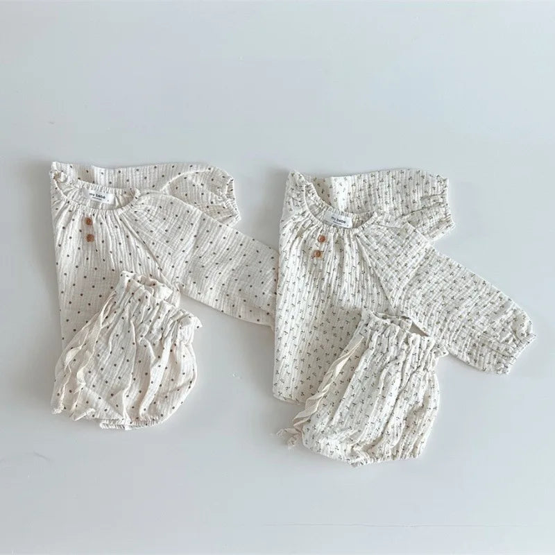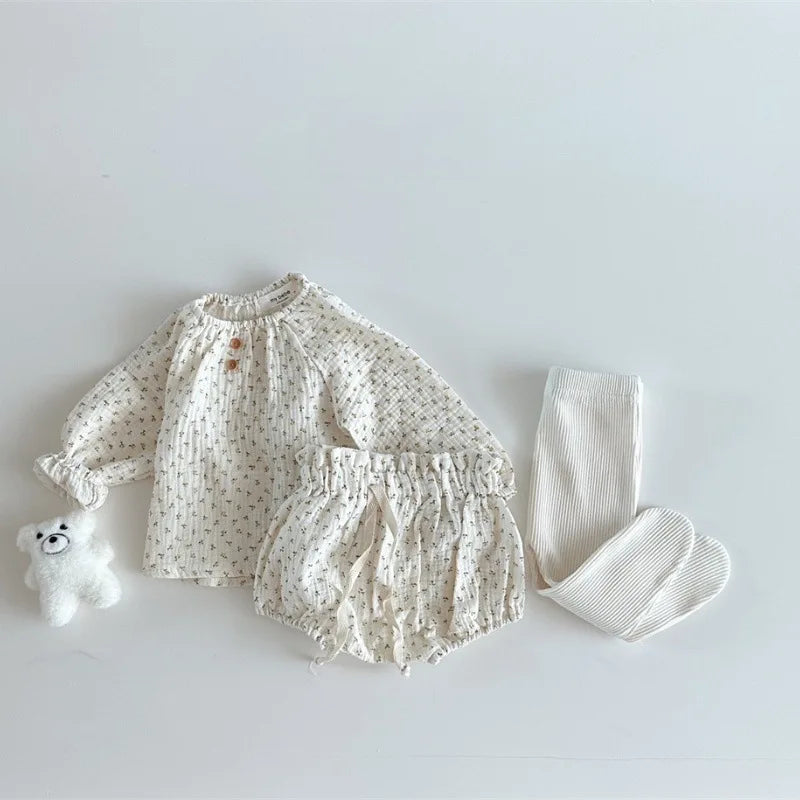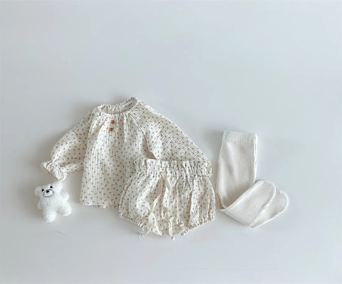 Get your little one ready for adorable playdates with this Long-Sleeved Top & Shorts Print Set. Crafted from soft and breathable cotton, this set is designed for maximum comfort. The long sleeves provide extra warmth, while the floral pattern adds a touch of charm. With a pullover closure and regular sleeve style, dressing up your baby has never been easier. Suitable for both boys and girls, this unisex set is perfect for ages 6 to 36 months. Get your camera ready because your baby will look absolutely precious in this stylish ensemble! 🌸👶📸