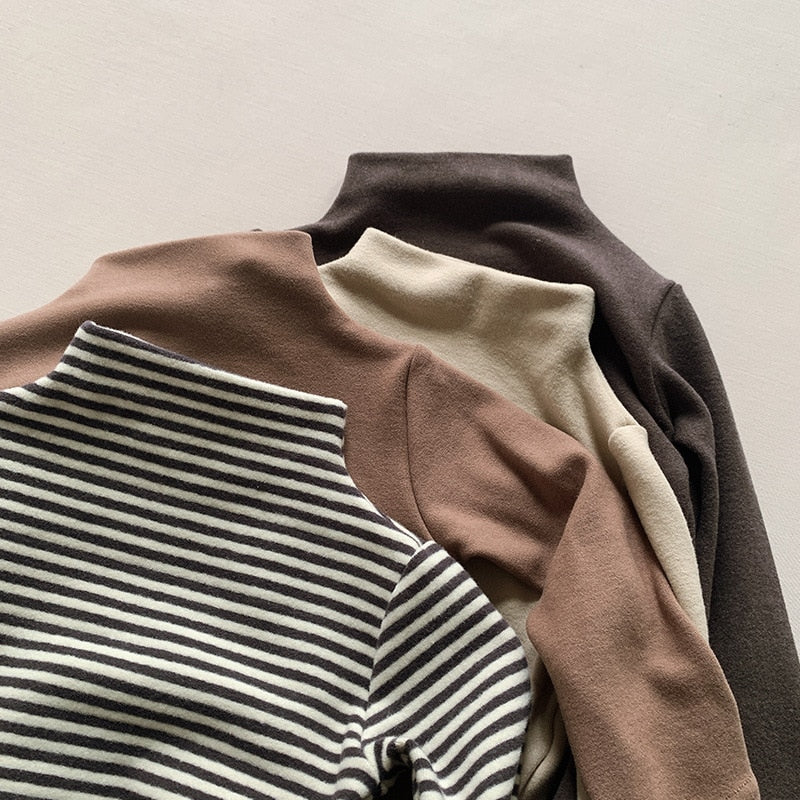 This turtleneck top is perfect for keeping your little one warm and cozy during the winter months. Made from soft, high-quality cotton, it's comfortable to wear and won't irritate sensitive skin. The long sleeves and turtleneck collar provide extra coverage, while the solid/striped pattern adds a touch of style. This top is available in a variety of sizes, from 1 to 6 years old, so you can find the perfect fit for your child.