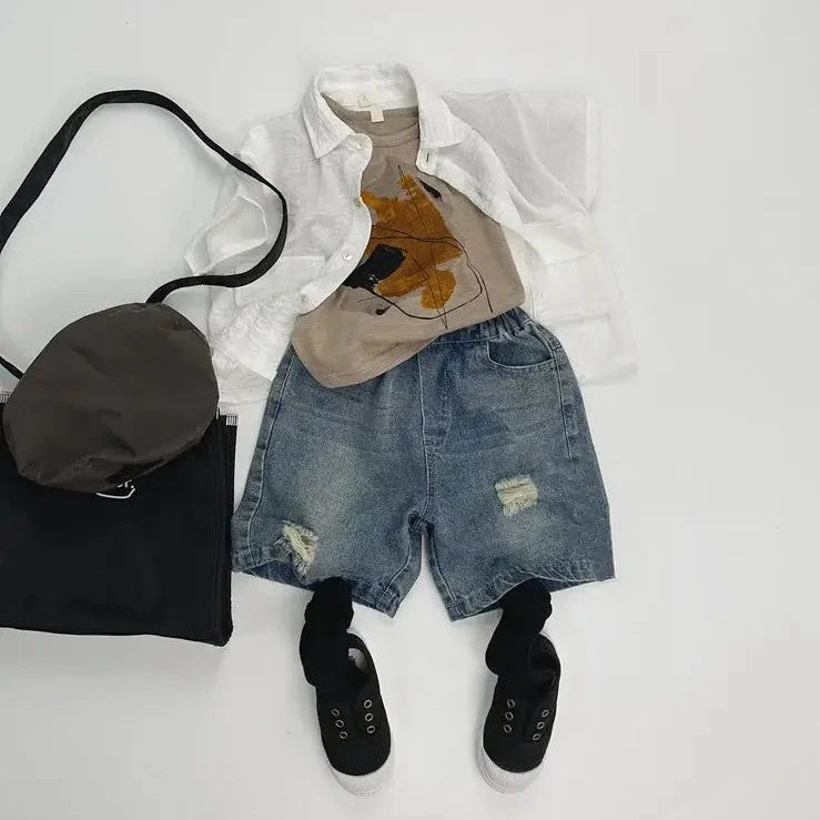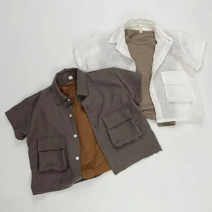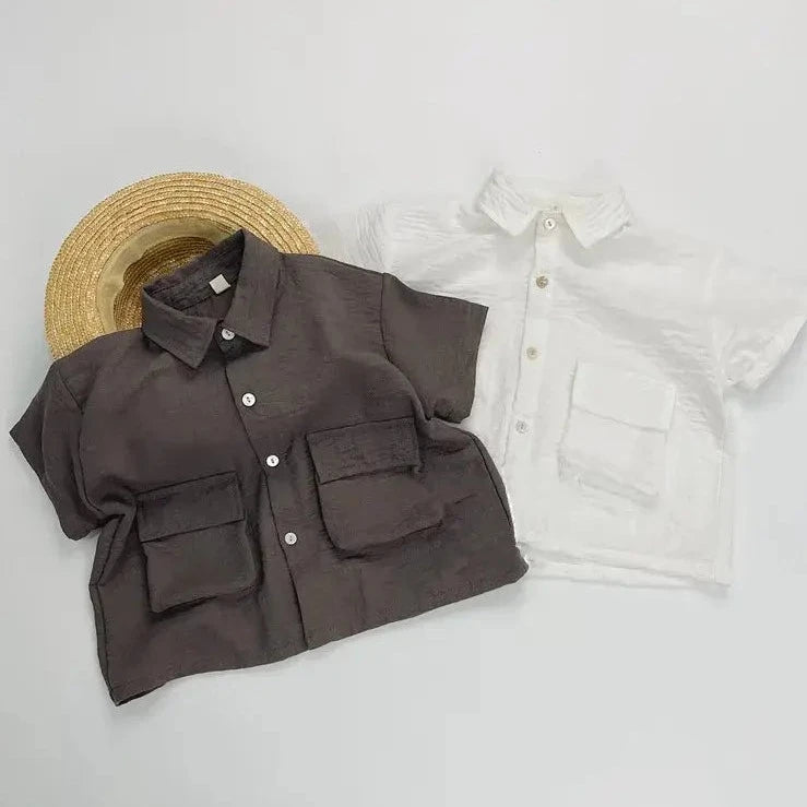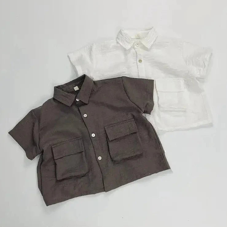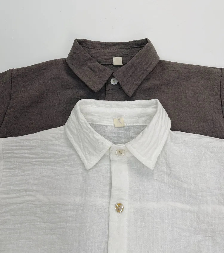 Get your little one ready for summer adventures with our Loose Solid Short Sleeve Shirt. Made from a blend of cotton and linen, this casual shirt ensures comfort and breathability all day long. The turn-down collar adds a touch of style, while the solid pattern keeps it versatile. Perfect for boys aged 1-6 years, this shirt fits true to size. Whether it's a family outing or a playdate with friends, our Loose Solid Short Sleeve Shirt is the go-to choice for every young adventurer. 🌞🌴 #SummerStyle #KidsFashion