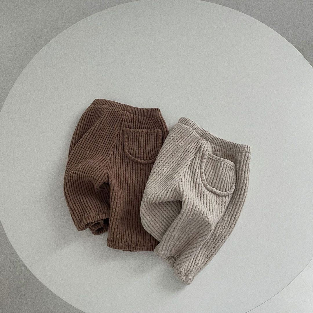 Dress up your child in these classic and comfortable casual pants. They have a solid striped pattern and are made of high-quality cotton that feels soft. The pants have a loose fit and are true-to-size, ensuring that they can be worn throughout Spring and Autumn. They come in unisex sizes ranging from 9 months to 3 years old and have an elastic waistband.