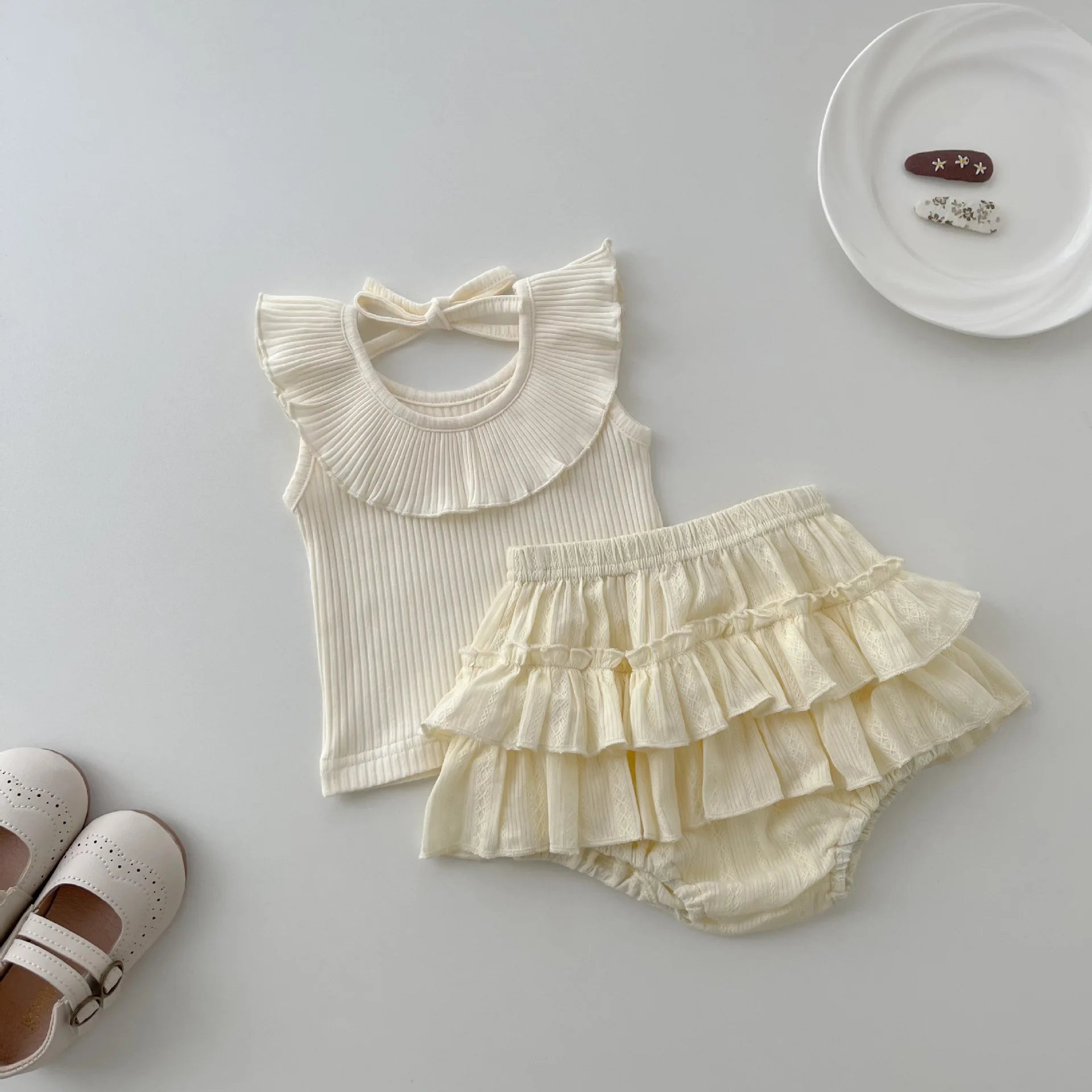 Lotus Collar Top & Princess Shorts Set