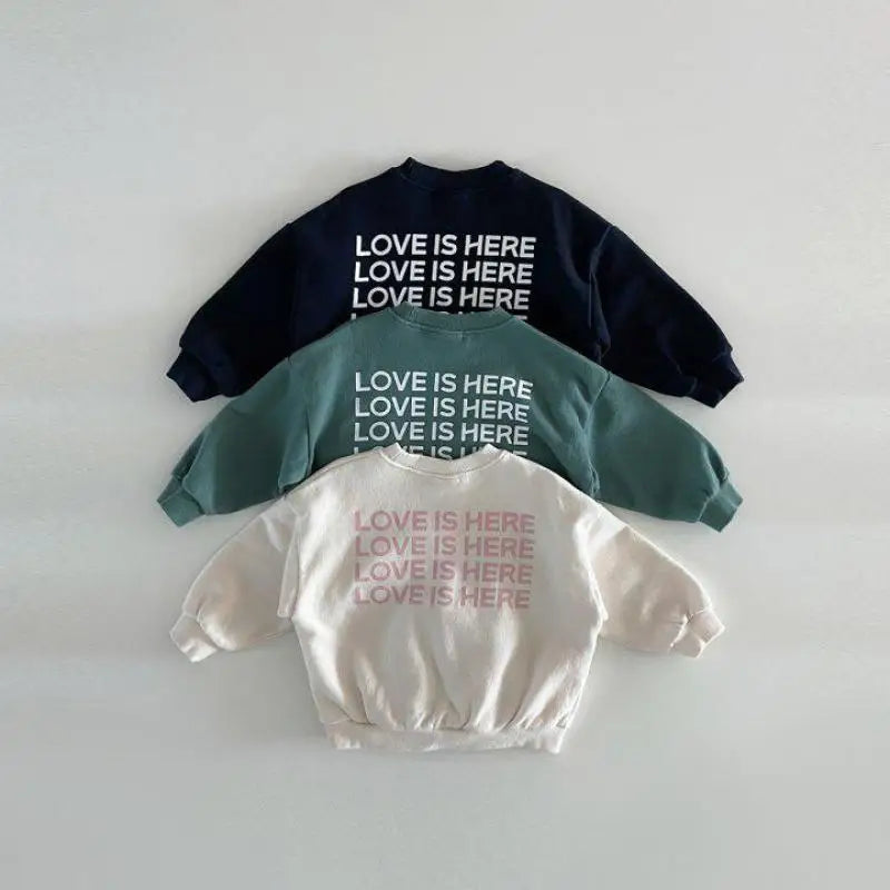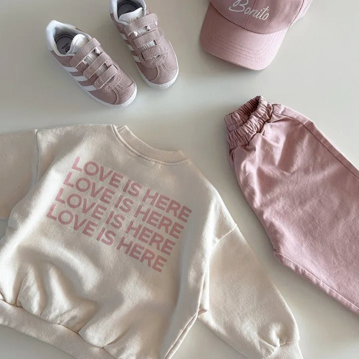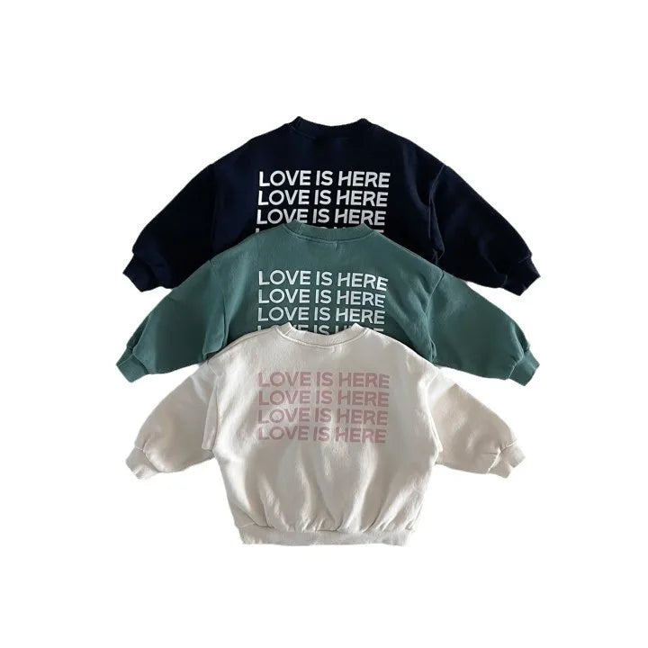 Get ready for the sweetest addition to your little one's wardrobe! Our 'LOVE IS HERE' sweatshirt isn't just adorable—it's a daily reminder of what matters most. With its modern typography and cozy comfort, this is the pullover that makes hearts melt wherever your mini goes! 🌈