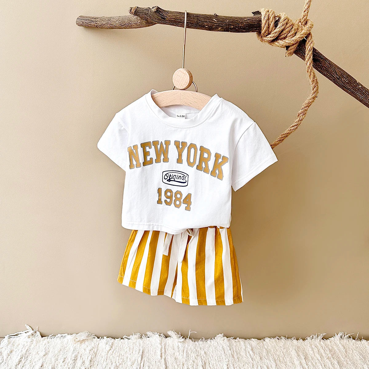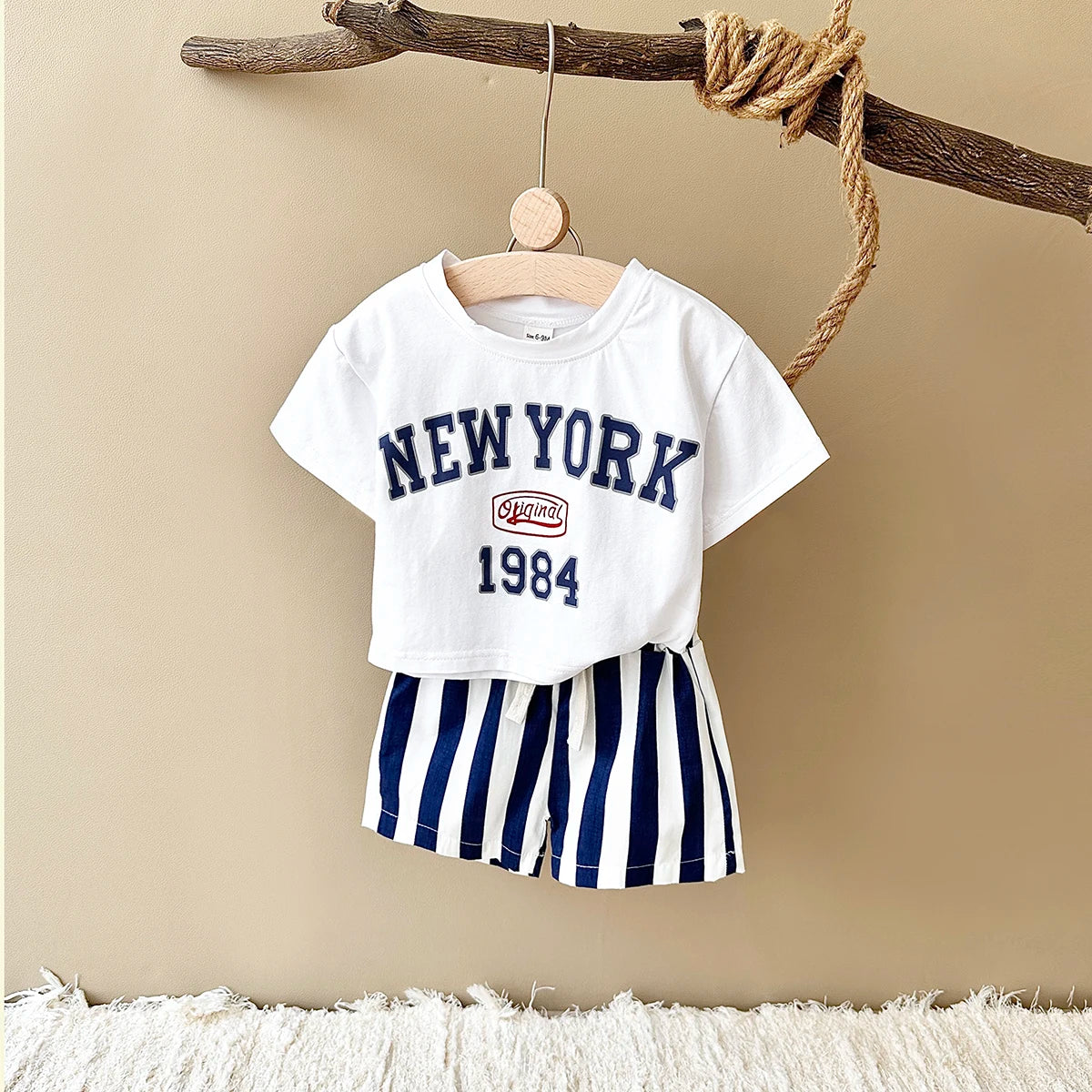 'NEW YORK' Casual Tee & Striped Shorts Set