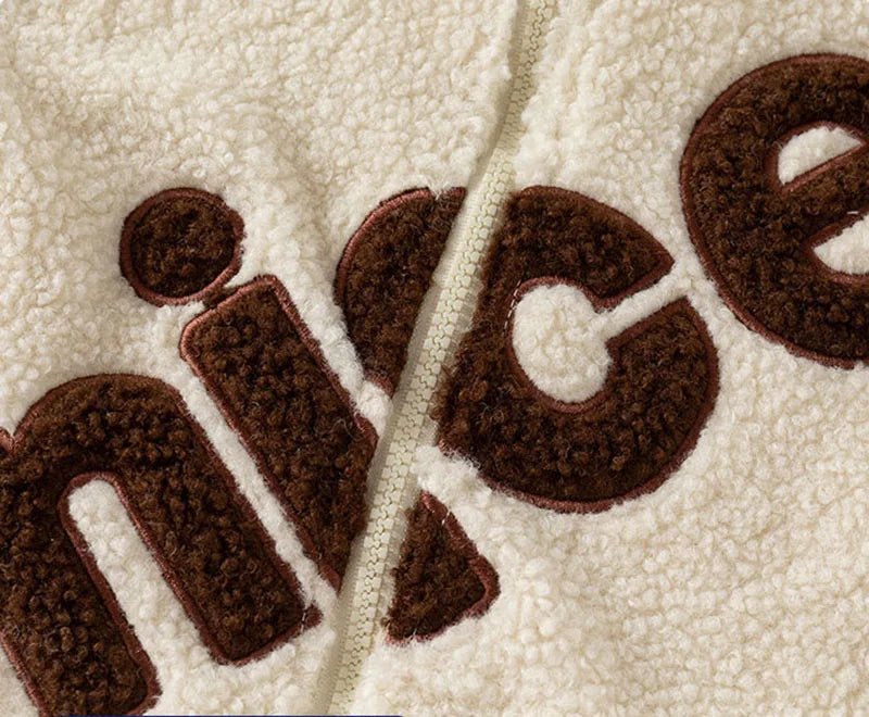 Add a layer of warmth and charm to your child’s wardrobe with our 'nice' Zip-Up Sherpa Jacket! ❄️🧥 Crafted with thick, plush sherpa fabric, this casual jacket is designed to keep kids snug and cozy during crisp autumn days. The playful "nice" letter design adds a cheerful touch, while the zip-up front and turtleneck collar offer extra warmth and comfort. Perfectly suited for boys and girls aged 1-6 years, this unisex jacket fits true to size and is ideal for layering over everyday outfits. 🌟🍁