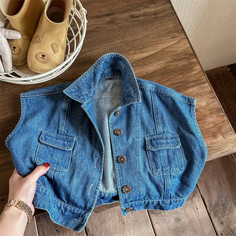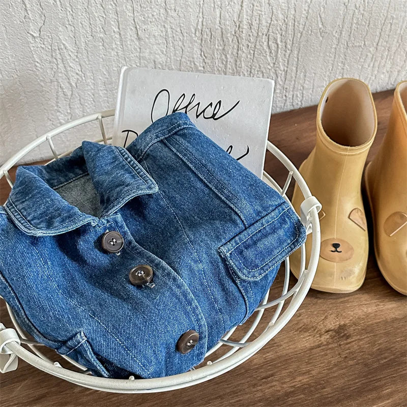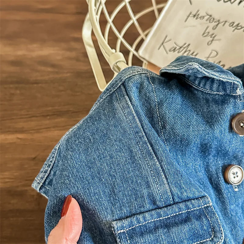 Dress your little fashionista in our Oversized Denim Vest, perfect for trendy kids aged 1-6 years! This unisex kids vest, made from high-quality cotton, is both thick and cozy, making it an ideal choice for spring and autumn. The casual style with a turn-down collar adds a stylish touch to any outfit, while the solid pattern ensures it pairs effortlessly with their favorite looks. Designed to fit true to size, this versatile kids' clothing piece is a must-have for any child's wardrobe. Let your kid rock the latest in children's fashion with this stylish and comfy vest! šš¶