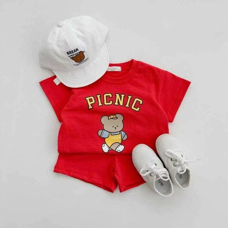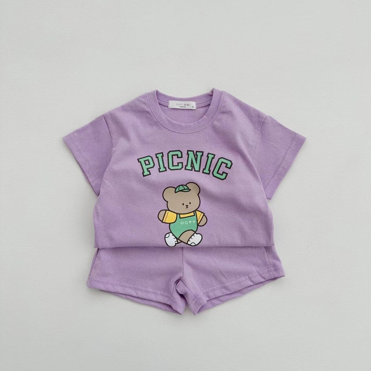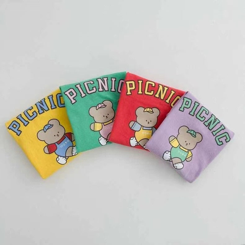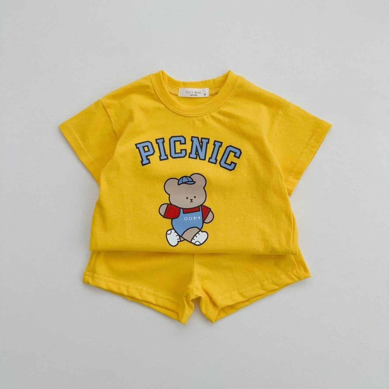 'PICNIC' Cute Cartoon Bear T-shirt & Shorts Set