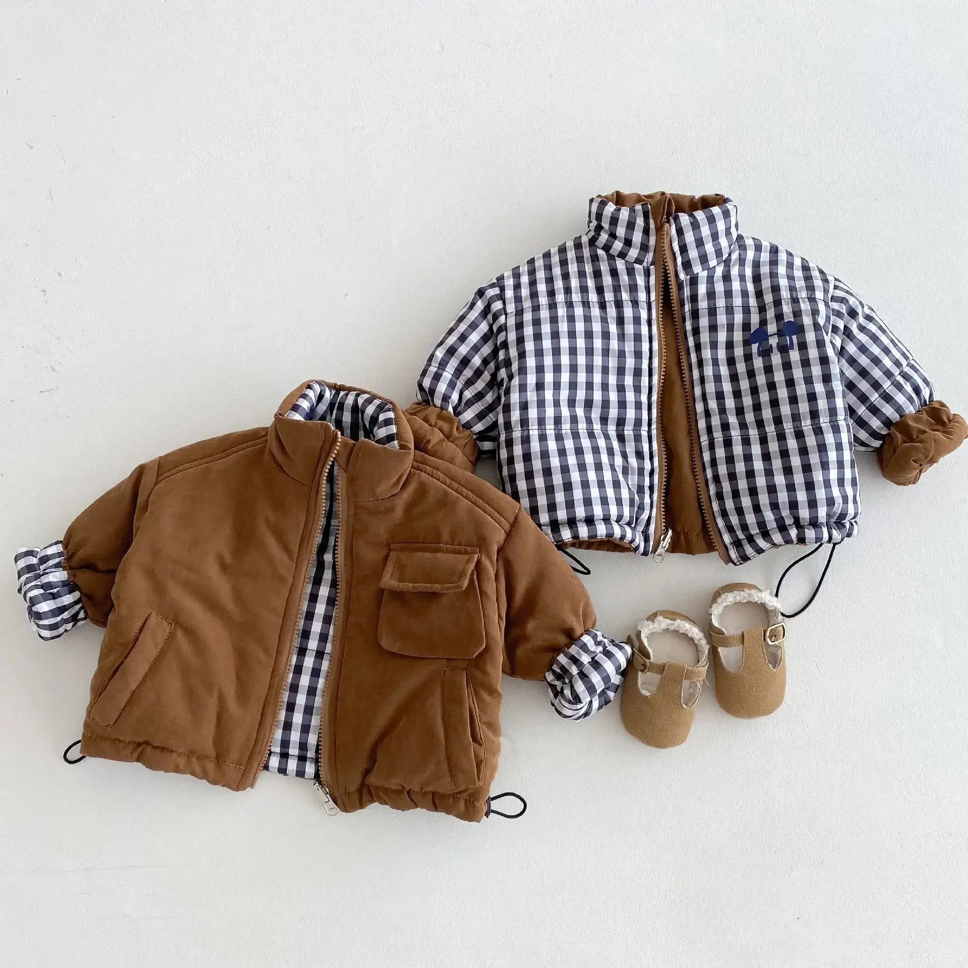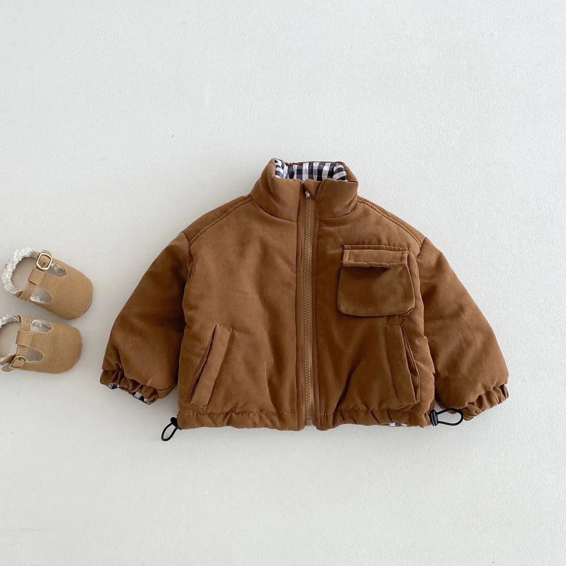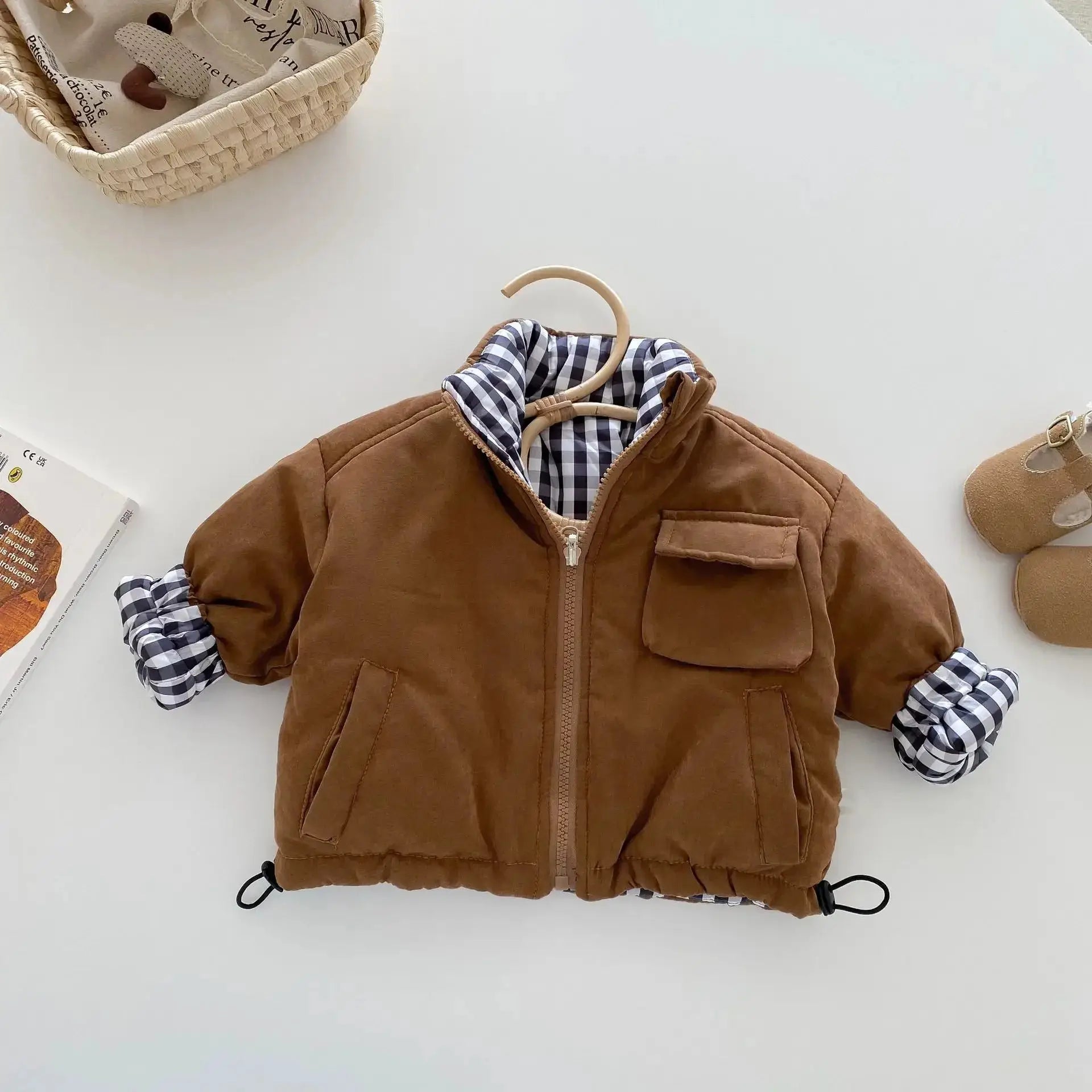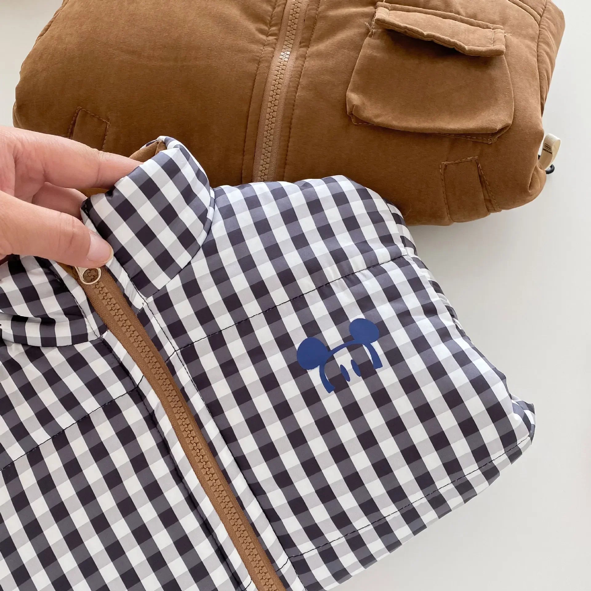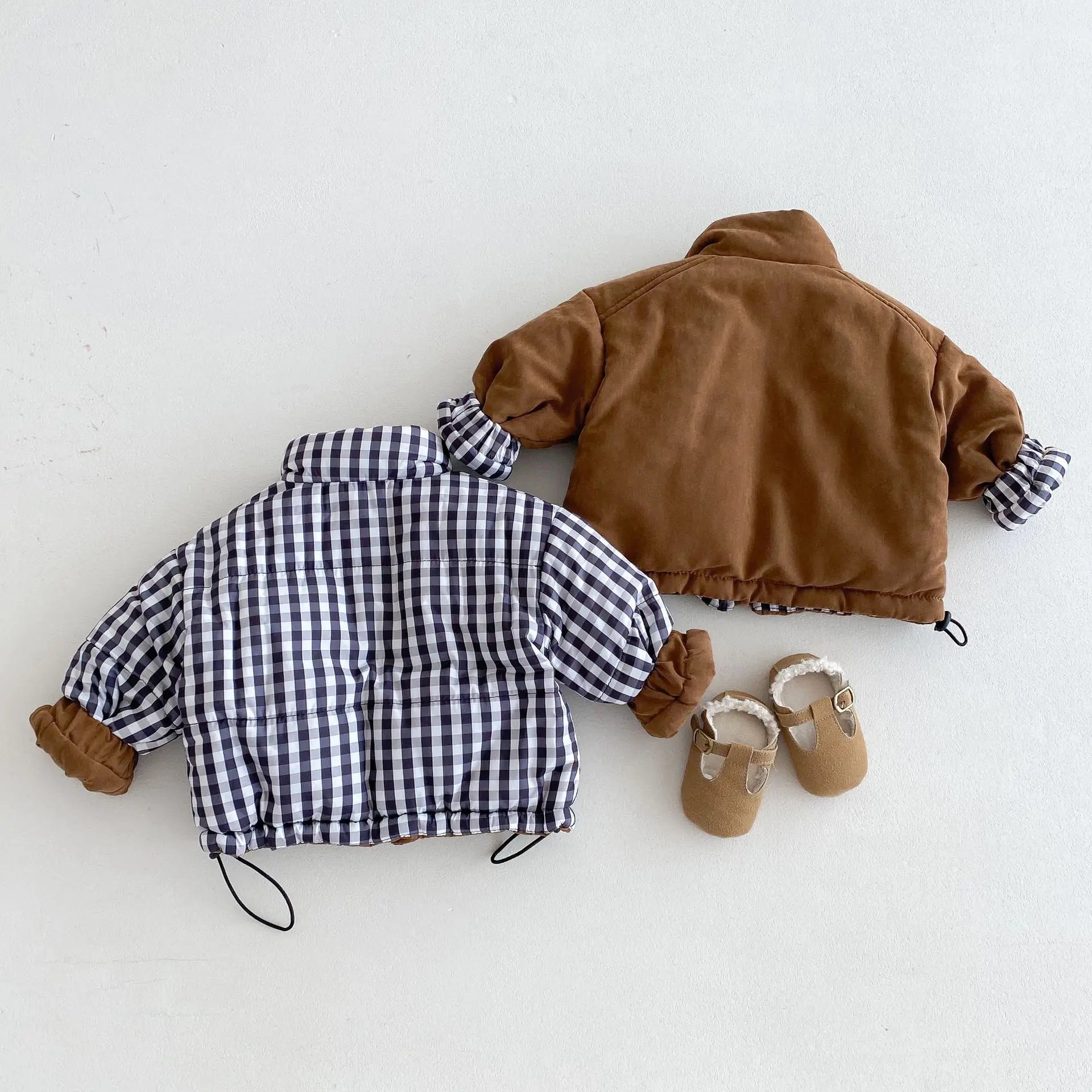 Keep your little one cozy and stylish in the Plaid Double-Sided Winter Coat! ❄️🧥 Perfect for kids aged 6 months to 5 years, this versatile coat is crafted from cotton and polyester with a warm cotton filling, ensuring maximum comfort during the colder months. Featuring a trendy plaid pattern, a zipper closure, and a regular fit, this unisex coat fits true to size and is perfect for layering on chilly days! 🌬️