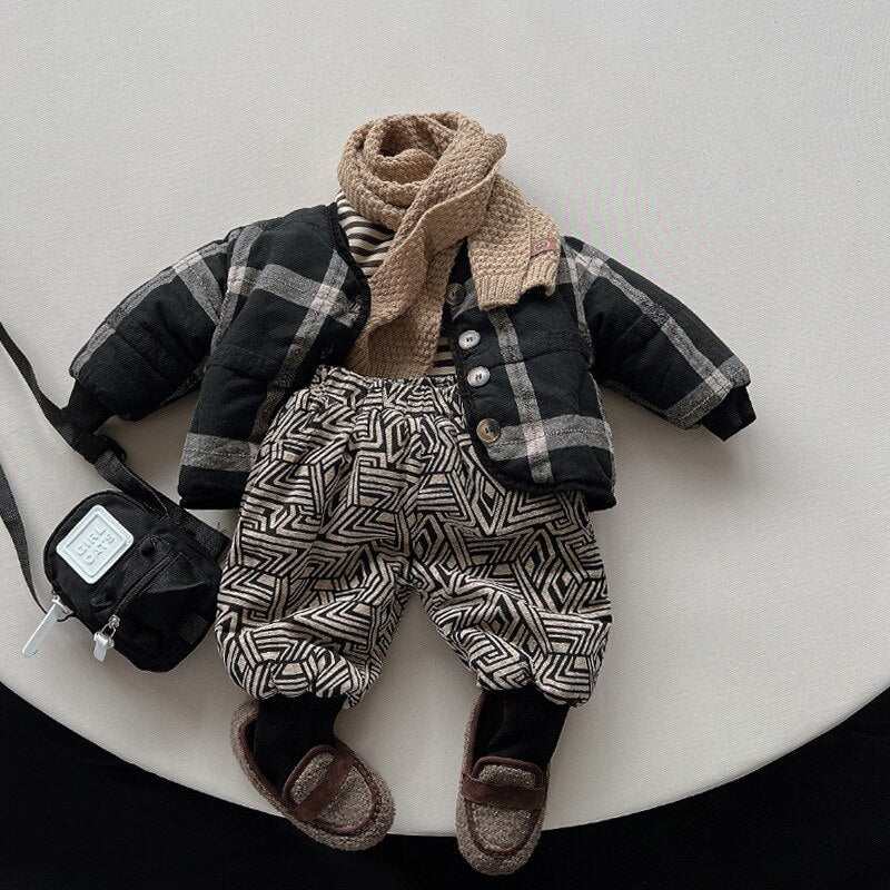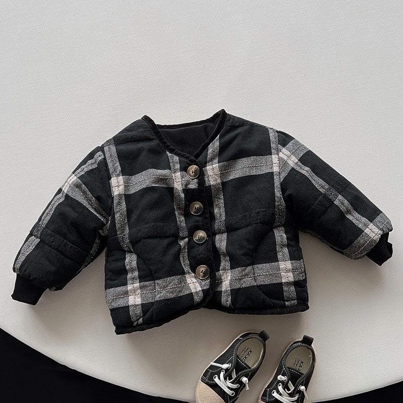 Get in line for recess in our rad plaid jacket! This heavy cotton jacket comes in classic buffalo plaid patterns that rule the schoolyard. With a cozy O-neck and long sleeves to lock in warmth, it's the MVP of winter outerwear. The worsted fabric is built to last through months of wear. Designed to fit just right, this casual coat layers perfectly over their faves. Regular length for great coverage from the cold. Model Children plaid jacket and let them sport school spirit and standout style with this perennial cold weather favorite!