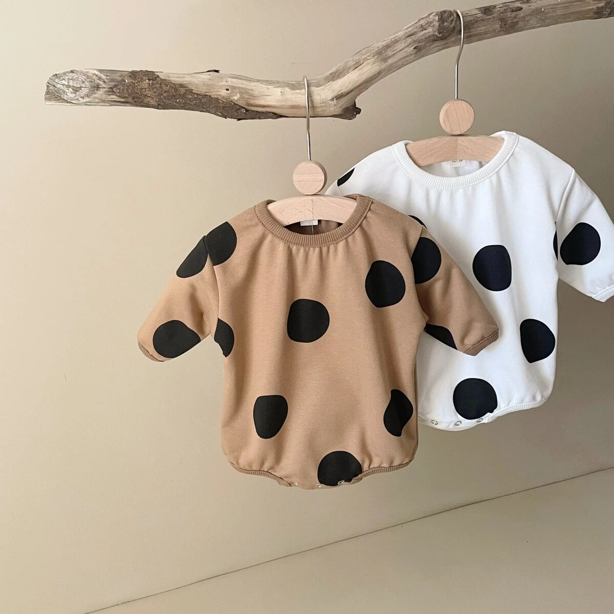 Welcome your baby girl to the world in style with this cozy Polka Dot Long-Sleeved Onesie! 🐣 Perfect for spring and autumn, this onesie is made with a snug cotton and polyester blend which fits true to size. The O-Neck collar and playful polka dot pattern will make your little one look as cute as can be! 💘
