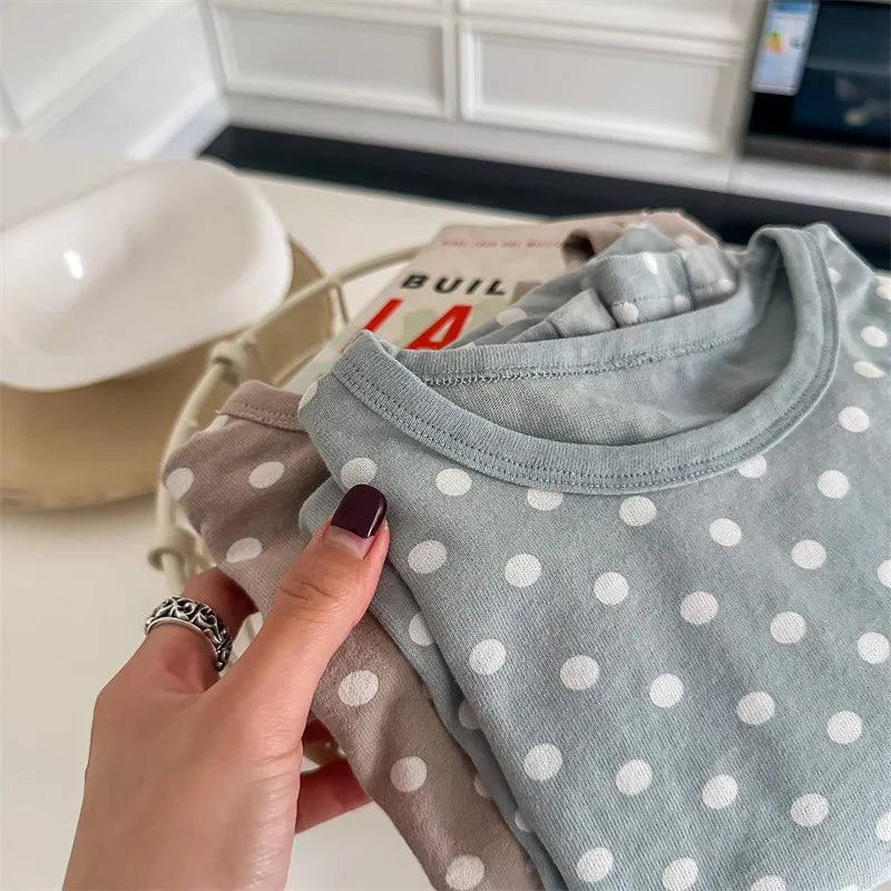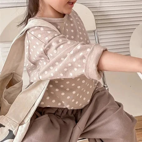 Get ready to make a stylish statement with our Polka Dot Long-Sleeved T-Shirt! 🎉 Crafted from soft and breathable cotton, this casual tee is designed for maximum comfort. The regular fit and O-neck collar are perfect for children aged 1-6 years. The playful polka-dot pattern adds a fun touch to any outfit, while the long sleeves provide extra warmth during cooler days. This versatile top is a must-have addition to any little one's wardrobe, perfect for both boys and girls. Shop now and let your child's personality shine through! ✨👕