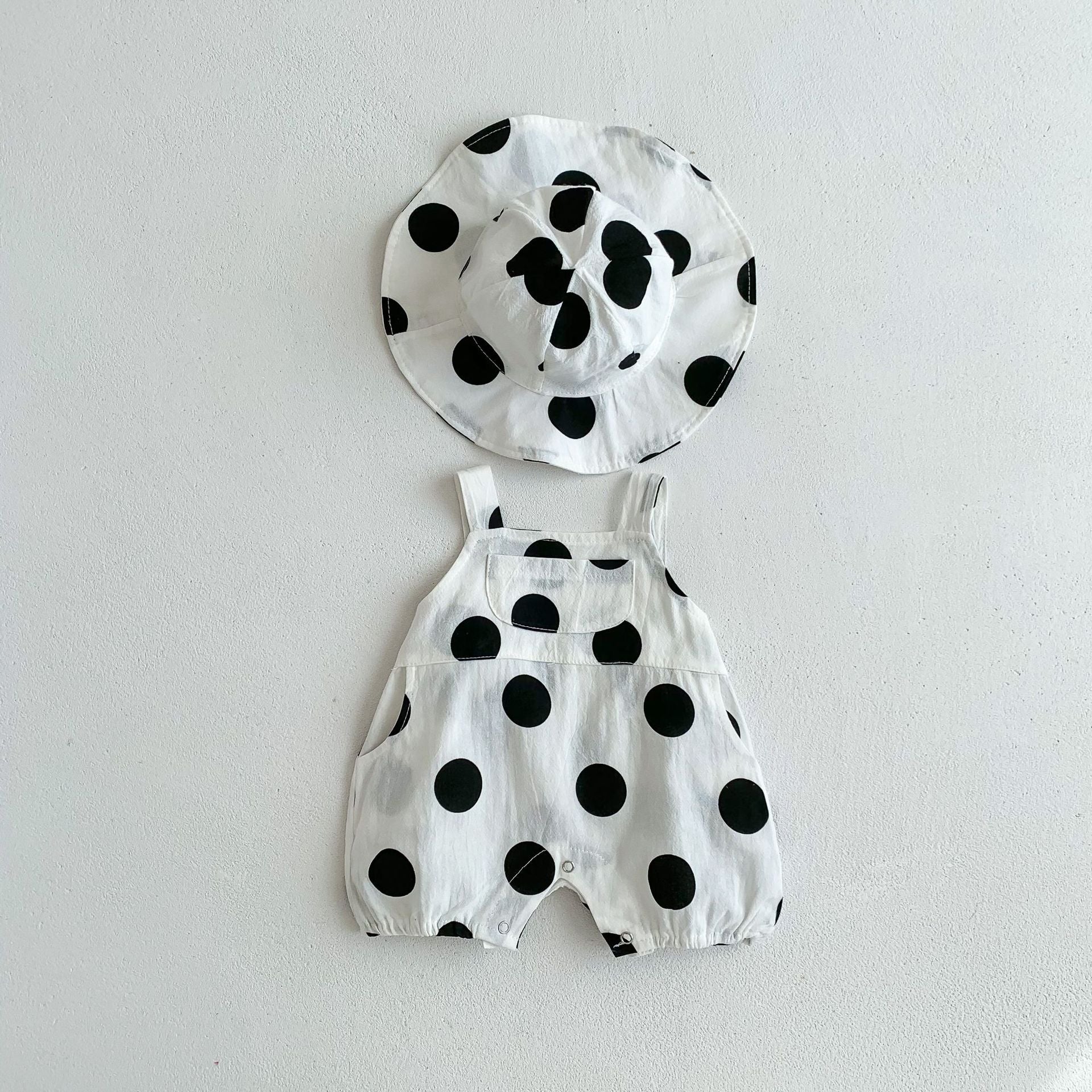 Get ready for summer adventures with our adorable Polka Dot Sling Romper & Hat Set! 🌞 Made from soft and breathable cotton, this unisex romper is perfect for keeping your little one cool and comfortable. The sleeveless design and square collar add a touch of charm, while the polka-dot pattern adds a playful flair. With a pullover closure, it's easy to dress your baby in no time. Available in a range of sizes, this romper set fits true to size. Get your little one ready for fun-filled days in style! 🌈👶🏻✨