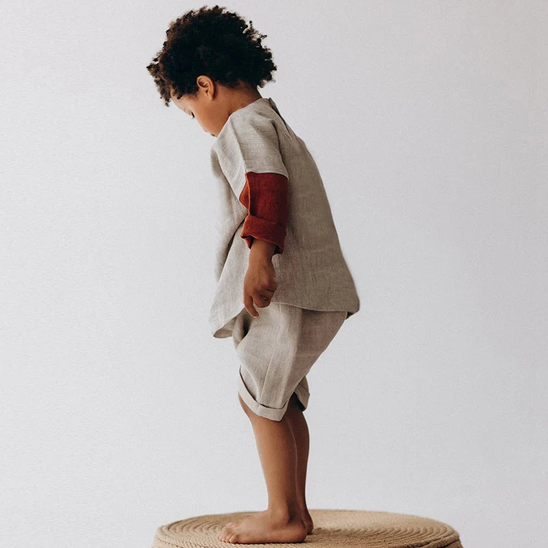Get your little one ready to rock the retro look with this stylish Retro Color Block Long-Sleeved Shirt and Pants Set. Made from a blend of cotton and linen, this casual set is perfect for spring and autumn. The color-block design adds a cool and trendy touch, while the long sleeves provide warmth and comfort. With its o-neck collar and single-button closure, this set is easy to put on and take off. Available in sizes for boys aged 2–6 years, it's the perfect outfit for any occasion. 🌈✨