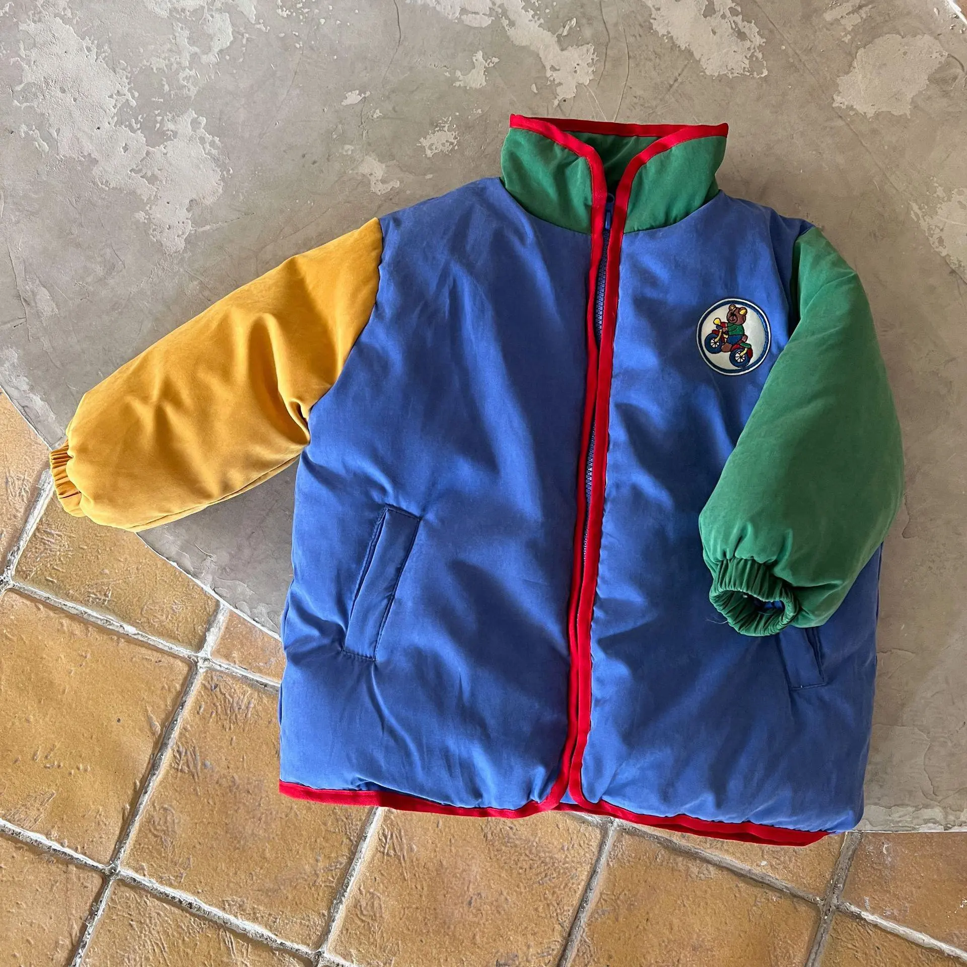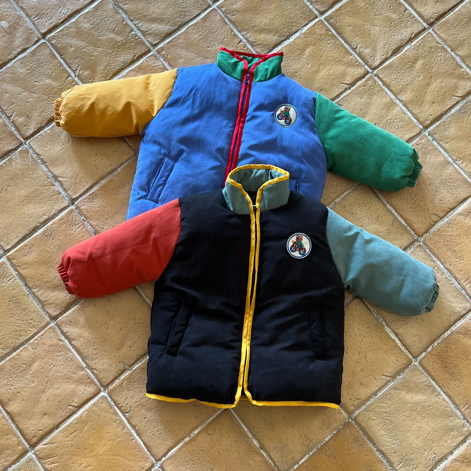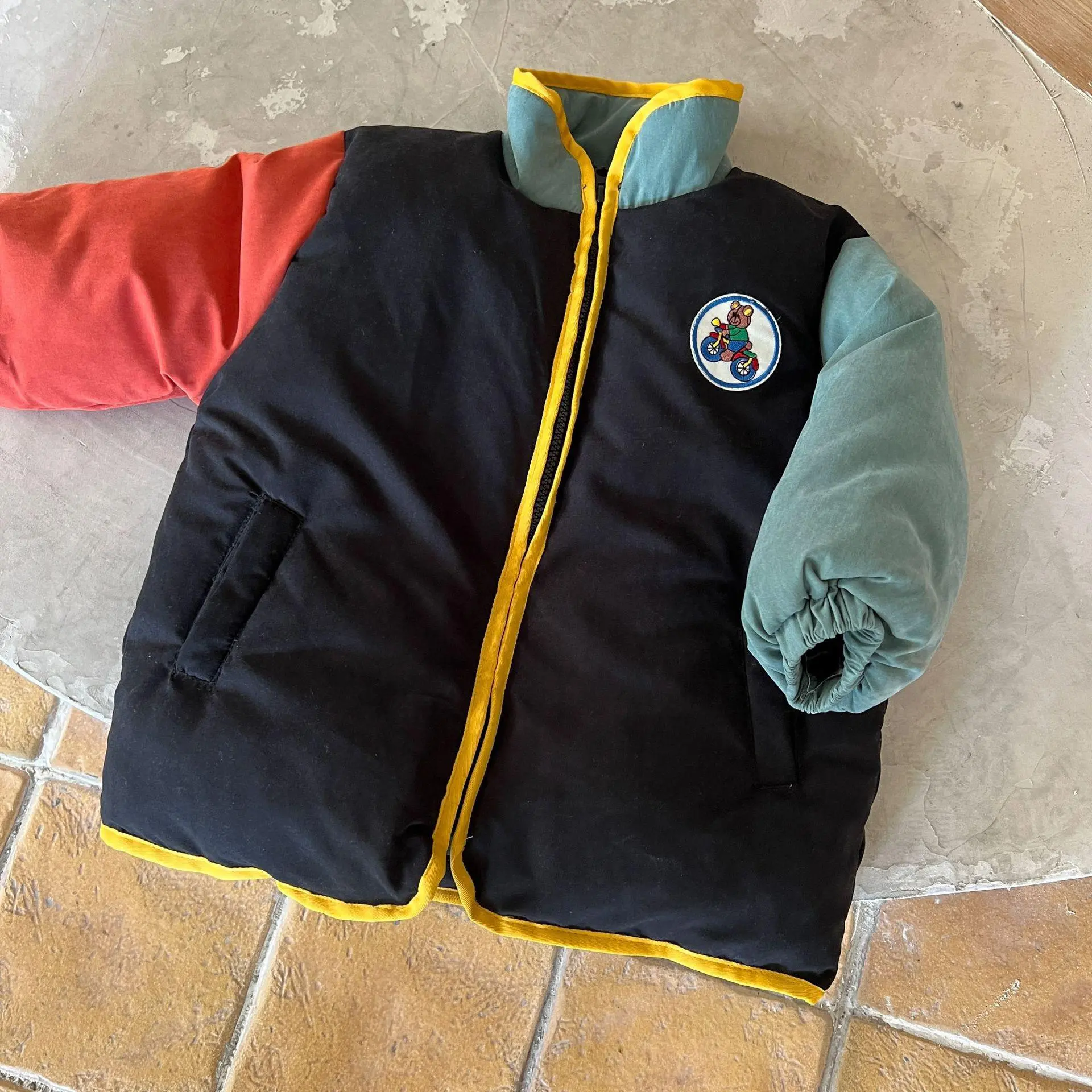 Keep your kids warm and stylish with this retro color-block splicing parka! Crafted with a blend of cotton and polyester fibers, and filled with cotton - it's both lightweight and comfortable. With a regular clothing length and O-neck collar, it's perfect for the winter season. Get it in unisex sizes to fit your little ones from 7 months to 12 years! 🧥 🧦