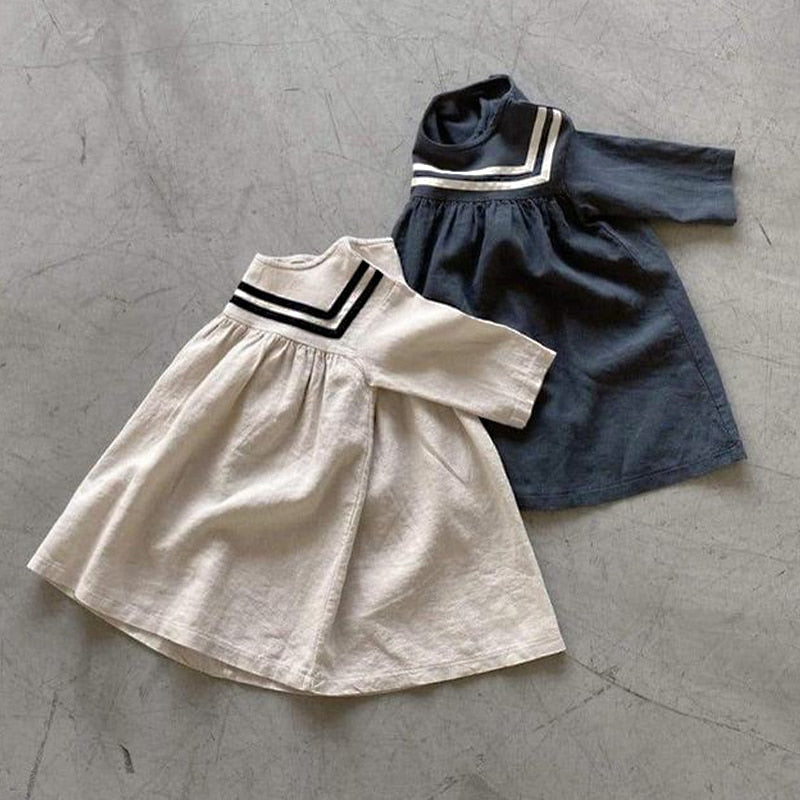 This adorable long-sleeve A-line dress is great for your lil' one this spring-fall! Crafted from a cozy cotton-linen mix, it's sure to keep them in comfort and warmth. With a solid shade that's both chic and adaptable, plus an O-neck collar for added cuteness, this dress is a knee-length with a regular fit, guaranteeing to be a hit for seasons to come. Pick from sizes 2-6 years.