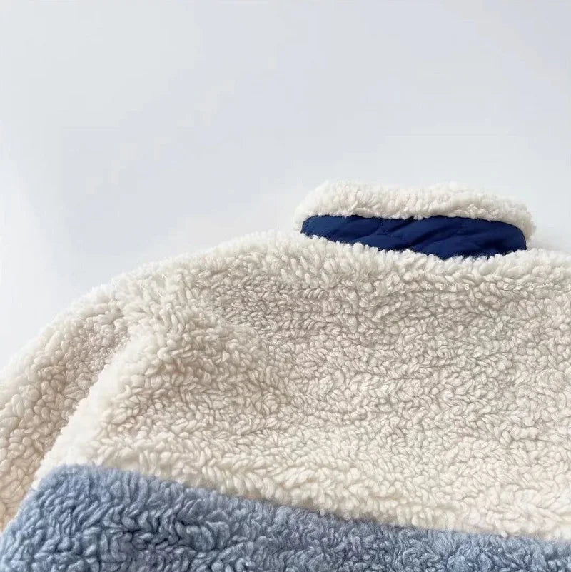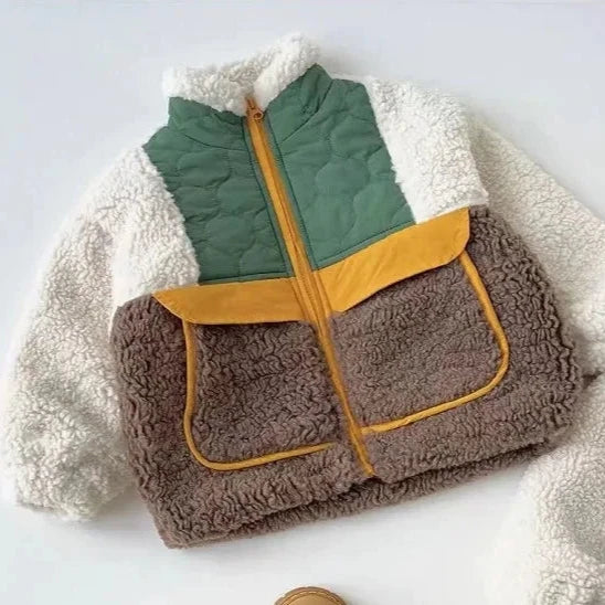 Keep your little one snug in style with the Sherpa Patchwork Jacket! 🧸✨ Designed for ages 1-7 years, this cozy winter essential combines soft cotton, fleece, and polyester to provide warmth without sacrificing comfort. The patchwork pattern and button-up collar add a playful, casual vibe, while the regular fit makes it perfect for everyday wear. Ideal for chilly winter outings! ❄️💫