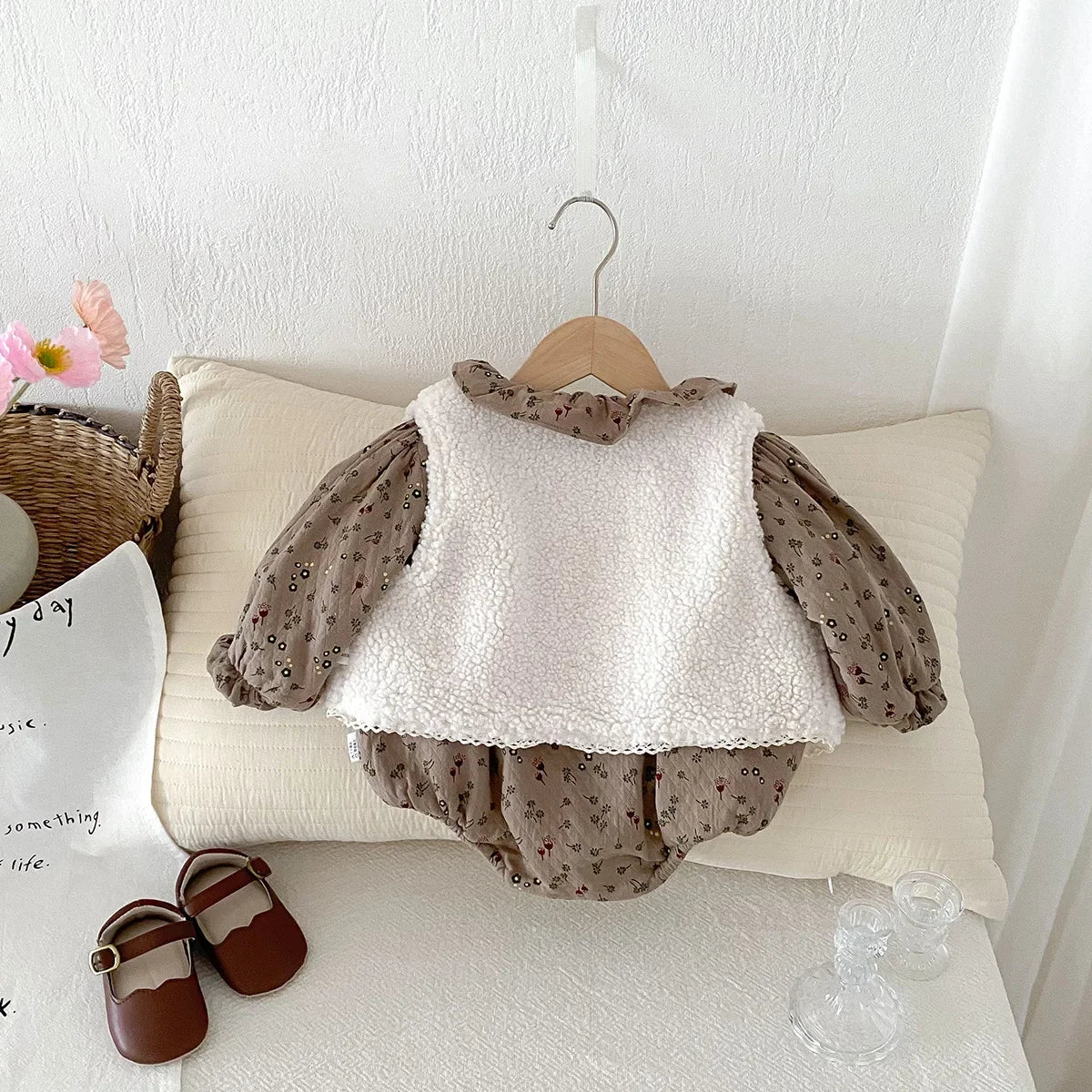 Keep your little one warm and stylish this winter with our Sherpa Vest & Onesie Two-Piece Set ❄️! Perfect for baby girls aged 3 to 24 months, this adorable set features a soft floral cotton onesie paired with a cozy sherpa vest for extra warmth. The turn-down collar and long sleeves add a touch of classic charm, making this set ideal for casual winter days or outings. Fits true to size, ensuring your baby stays snug and comfortable all day long. A must-have for every baby girl’s winter wardrobe!