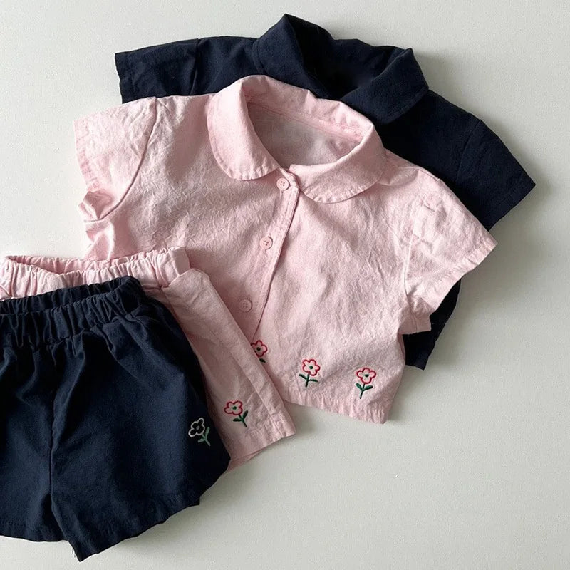 Let your little blossom bloom in this adorable Short Sleeve Flower Print Top & Shorts Set! 🌻 Made from soft, worsted cotton, this comfy set features a playful floral print and a relaxed fit, perfect for keeping your little one cool and stylish all summer long. ☀️ The short sleeves and turn-down collar add a touch of sweetness, while the shorts complete the look for easy outfit changes. This set is sure to be a favorite for picnics in the park, playdates with friends, or just a fun day in the sun! 🌞 #babyfashion #summerstyle #floralprint
