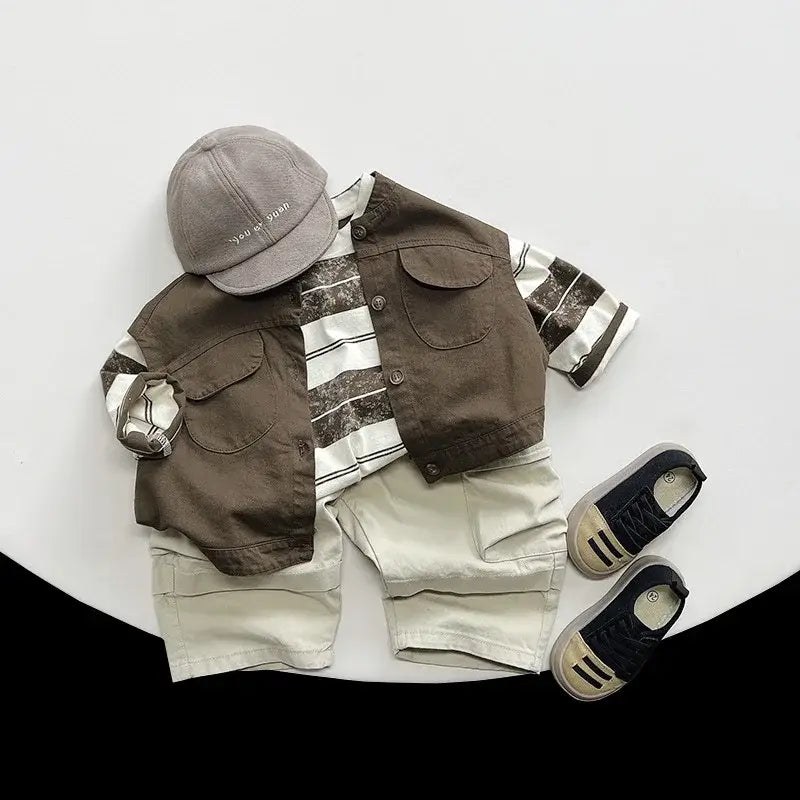 Get ready to take on any adventure with our Sleeveless Cargo Vest. Crafted from high-quality cotton, this unisex vest offers the perfect blend of comfort and style. With its thick construction and regular length, it's ideal for outdoor activities. Whether you're hiking, camping, or simply exploring, this versatile vest is a must-have. The casual design and solid pattern make it suitable for children aged 1-6 years. Embrace the spirit of exploration and make a statement with our Sleeveless Cargo Vest. 🌟🌿 #AdventureReady #OutdoorEssentials