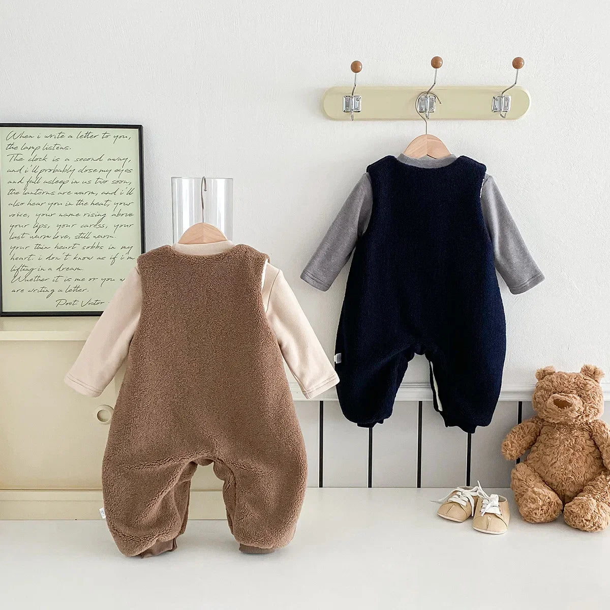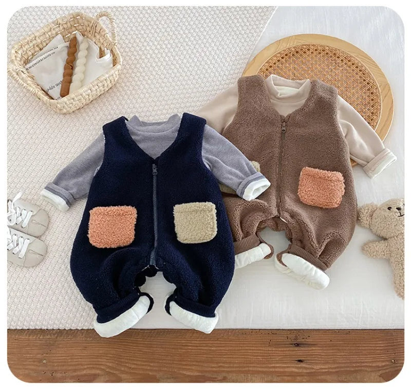 Wrap your baby in cozy comfort this autumn with our Sleeveless Sherpa Romper 🍂! Designed for babies aged 3 to 24 months, this adorable romper features a soft sherpa lining that keeps your little one warm while allowing for plenty of movement. The sleeveless, patchwork design and casual style make it perfect for layering or wearing on its own for a cozy look 🐻. With a convenient zip closure and a cute V-neck, it's easy to slip on and off. Fits true to size, so your baby can stay snug all season long!