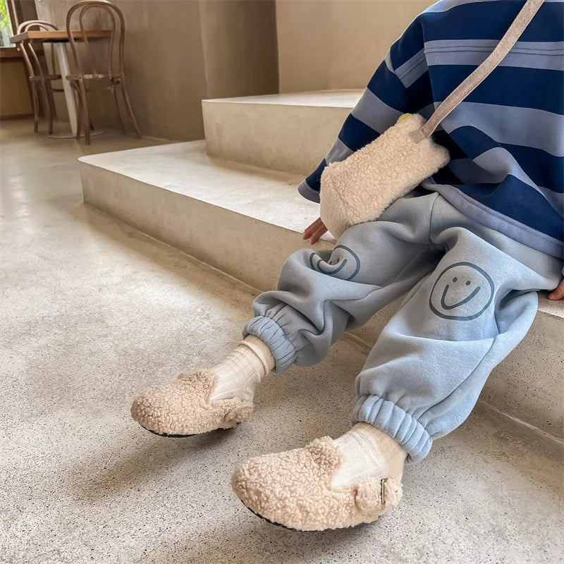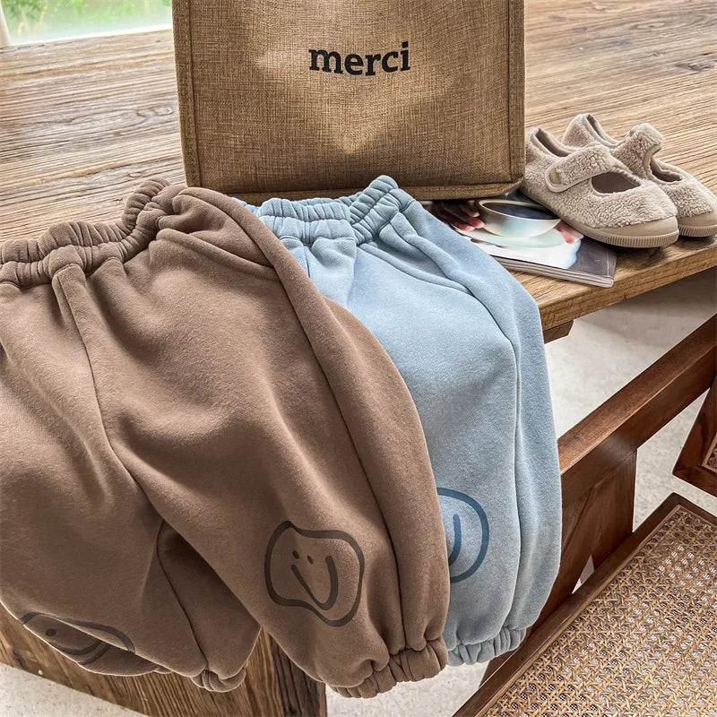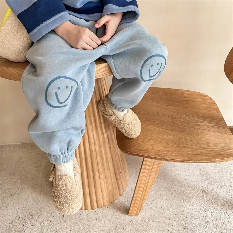 Get ready to smile your way through winter with our Smiley Face Fleece-Lined Pants! Crafted from cozy cotton and lined with soft fleece, these pants will keep your little ones warm and comfortable all season long. With their loose fit and elastic waist, they're easy to slip on and off. The adorable smiley face pattern adds a fun touch, while the pockets provide a practical storage solution. Suitable for boys and girls aged 1-6 years, these harem-style pants are the perfect addition to their winter wardrobe. šš