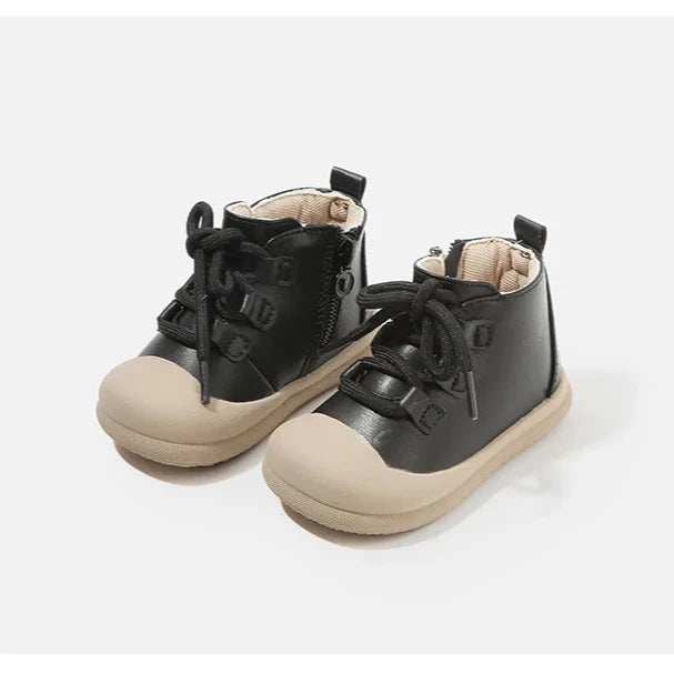 Keep your little one's feet cozy and dry this autumn with our Soft Solid Waterproof Ankle Boots 🌧️! Made from durable leather, these unisex boots are designed for toddlers aged 1 to 3 years. With an anti-slip rubber outsole, they provide excellent grip on wet surfaces, making them perfect for rainy days. The soft cotton fabric lining ensures all-day comfort, while the easy Velcro closure offers a secure fit for little feet. Available in brown, black, and beige, these round-toe boots fit true to size and are a must-have for your toddler’s autumn adventures!