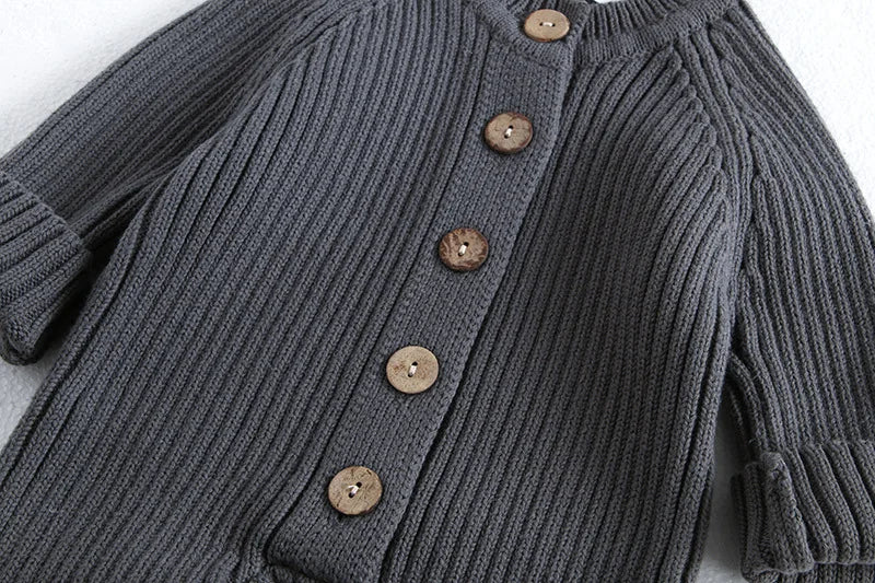 Wrap your little one in knitted perfection with our Solid Button-Down Knit Romper! 🧶 This cozy essential brings timeless comfort to tiny wardrobes during those transitional fall and spring days. Crafted from soft, breathable cotton knit that feels like a gentle hug, this unisex romper features convenient buttons that make changing time a breeze. The classic O-neck and long sleeves provide just the right warmth, while the true-to-size fit ensures your little bundle stays snug during all their daily discoveries. Whether they're taking first steps, enjoying tummy time, or snuggling up for storytime, this romper adds a touch of knitted charm to every precious moment! ✨