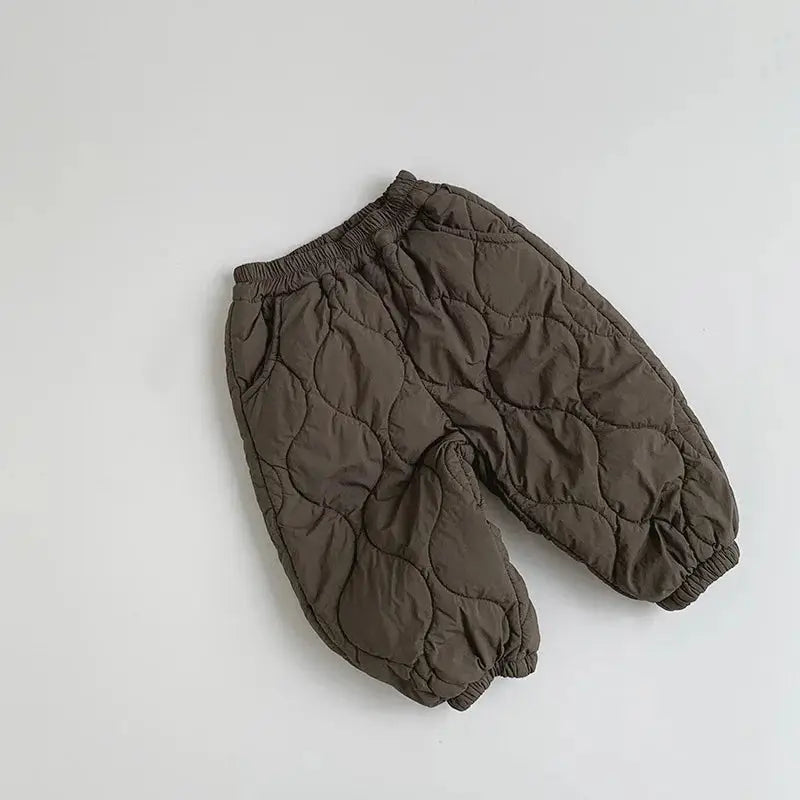 Keep your little explorer warm and comfy with these Padded Quilted Winter Pants! ❄️ Perfect for autumn and winter, these unisex pants are designed with cozy padding to keep your child snug during outdoor adventures. Made from durable nylon, these cargo-style pants feature a solid pattern and an elastic waist for a secure, comfortable fit 👖. Ideal for kids aged 1 to 6 years, they fit true to size—just grab your regular pick! Whether for a day out or playtime at the park, these quilted pants will be your go-to for keeping them cozy and stylish! 🧣