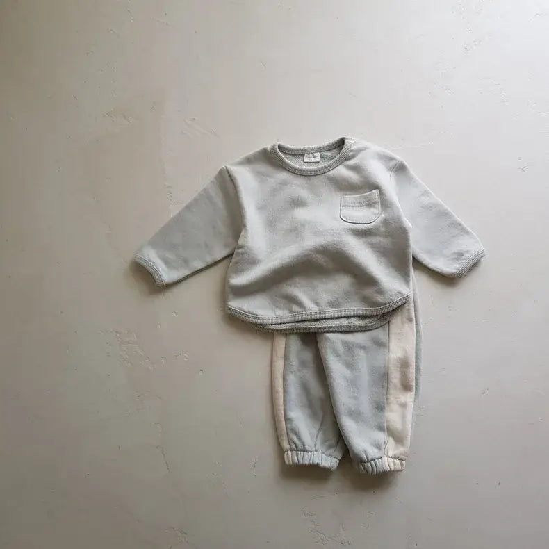 Get your little one cozy in style with our Solid Pocket Sweatshirt & Pants Set. Made from soft and breathable cotton, this casual set is perfect for spring and autumn. With its long sleeves and regular fit, it ensures maximum comfort for your baby. The pullover style and o-neck collar add a touch of simplicity, while the solid pattern exudes timeless charm. Suitable for both boys and girls, this set is a must-have for your little fashionista. 🌸👶 #BabyFashion #ComfortInStyle