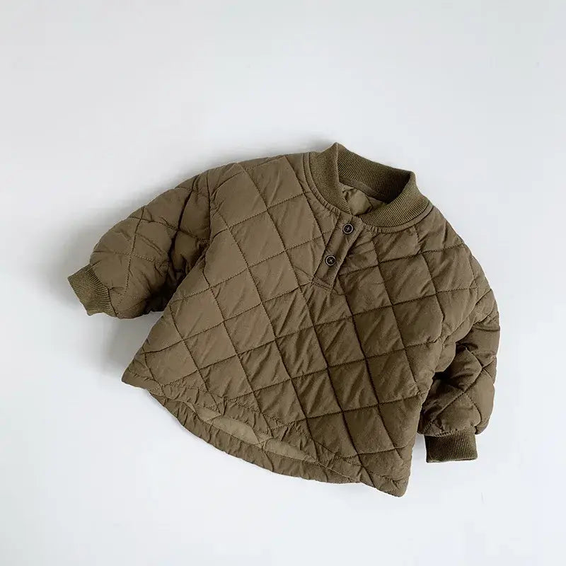 Wrap your little one in warmth and style with our Solid Quilted Padded Jacket! ❄️🧥 This cozy winter jacket, crafted from soft cotton, features a heavy quilted padding to keep them snug and comfortable in the coldest weather. Designed for easy wear, this pullover-style jacket with an O-neck collar and long sleeves is ideal for layering over sweaters or tees. Its simple, solid color and classic unisex design make it a versatile addition to any child’s winter wardrobe. Perfectly sized for kids ages 1-6, it’s the ultimate winter essential for warmth and comfort! 🌟💙