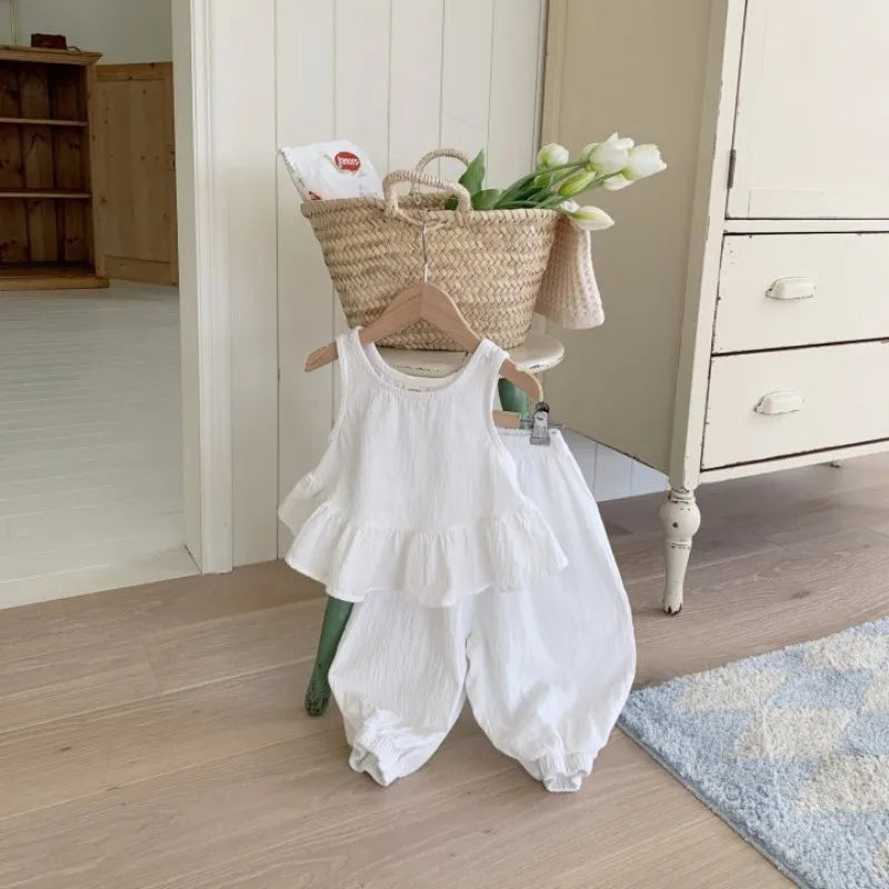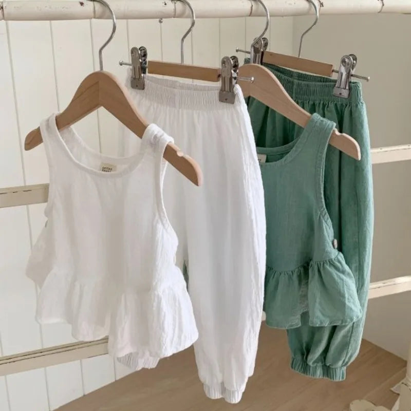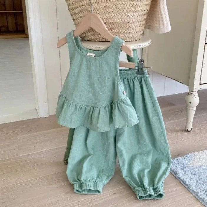 Twirl and twirl in adorable style with this Solid Ruffle Camisole & Pants Set! 🌸 This breezy set features a comfy, cotton camisole with a cute ruffle detail and matching pants, perfect for keeping your little girl cool and stylish all summer long. The pullover closure makes for easy dressing, while the sleeveless design and relaxed fit ensure all-day comfort. Whether your little one is playing at the park, having a picnic in the backyard, or just hanging out with friends, this set is sure to become a favorite in her wardrobe. #summerfashion #girlsclothes #rufflecamisole