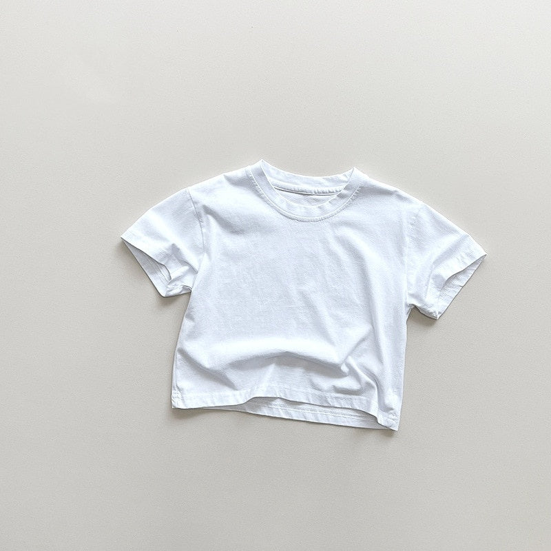 This children's top is crafted from 100% cotton and features a solid pattern, an o-neck collar, and short sleeves. It is suitable for any season and is designed to fit true to size. Unisex styling creates versatile wardrobe possibilities.