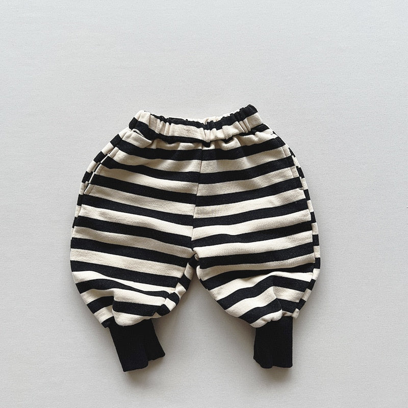 These comfy kids' trousers are the ideal Spring/Autumn piece. They have a loose, relaxed fit (plus an elasticated waist). Show off a mid-waisted, striped pattern and nifty pockets, all wrapped up in premium cotton fabric. Unisex, full-length, and true to size, these Harem-style pants make a hit with parents and kids alike – a must-have for any child's wardrobe!